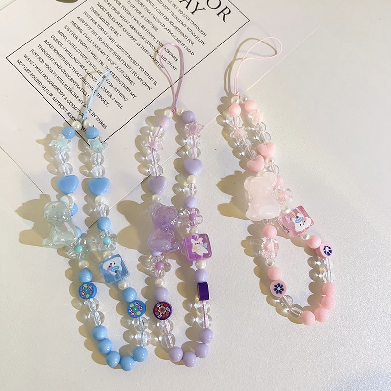 Cartoon Bear Pink Love Bead Chain Mobile Phone Chain Lanyard Short Pendant Key Chain Pendant Anti-fall For Women