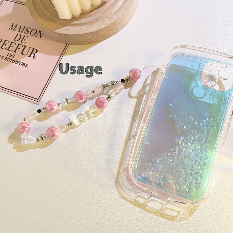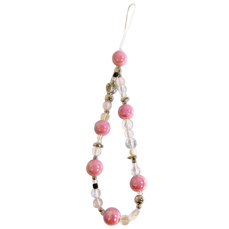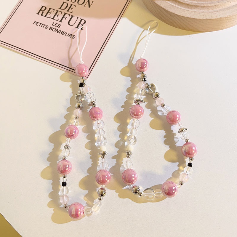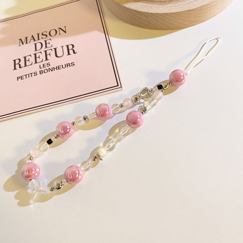 Pink Girly Mobile Phone Lanyard Bead Chain Mobile Phone Case Hand Strap Camera Ccd Key Chain Pendant For Women