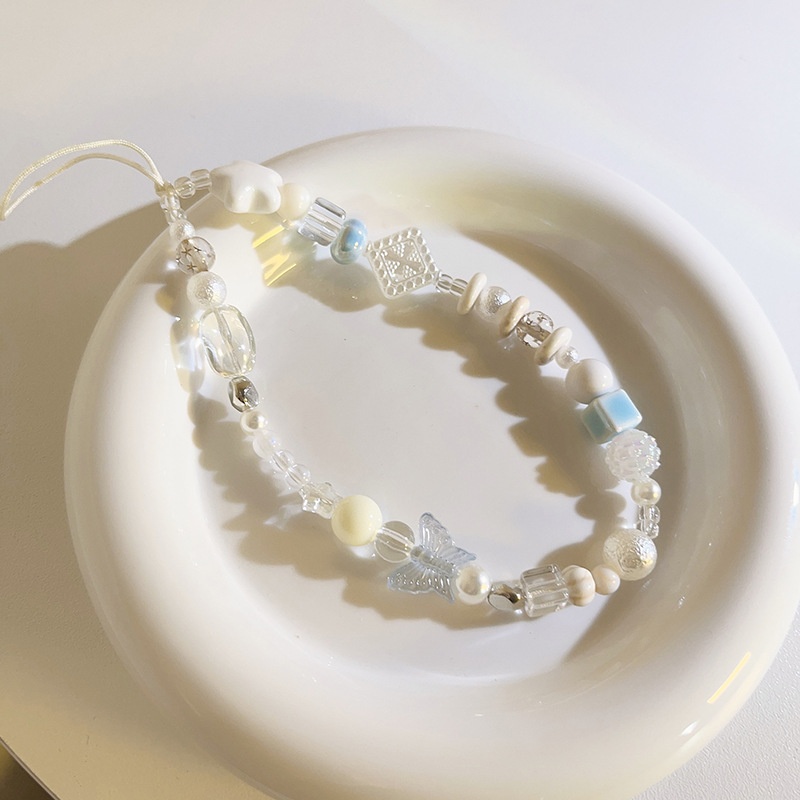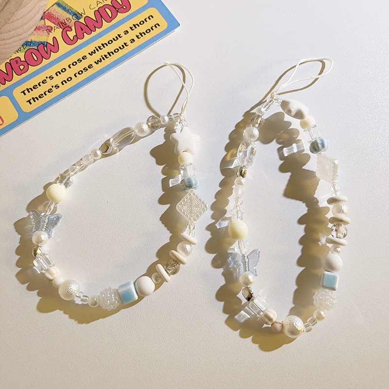 Small Fresh Blue Bow Bead Bracelet Mobile Phone Chain Pendant Universal Mobile Phone Case Mobile Phone Lanyard Anti-lost Chain Pendant