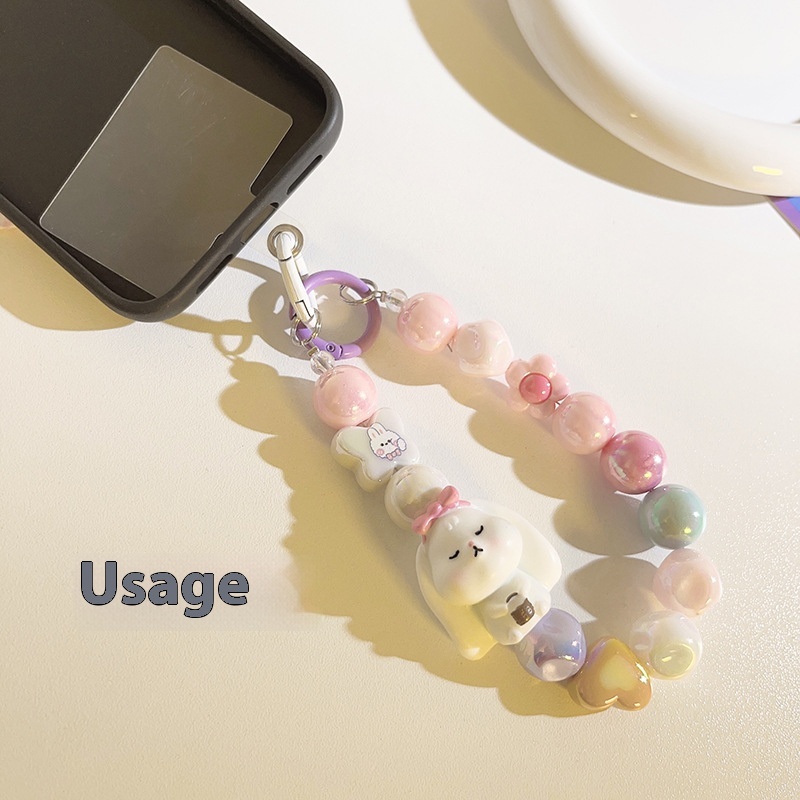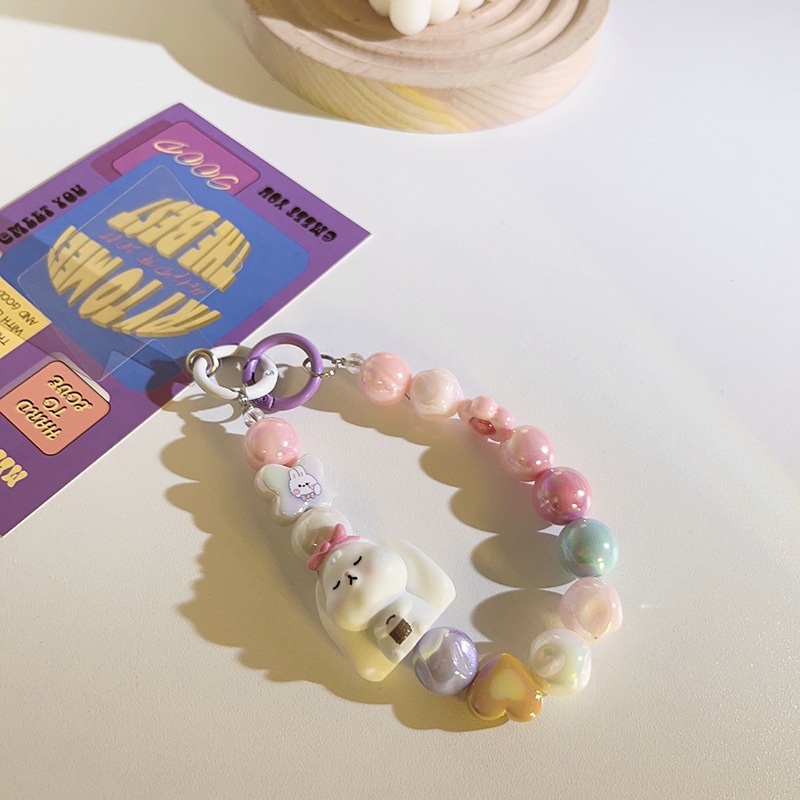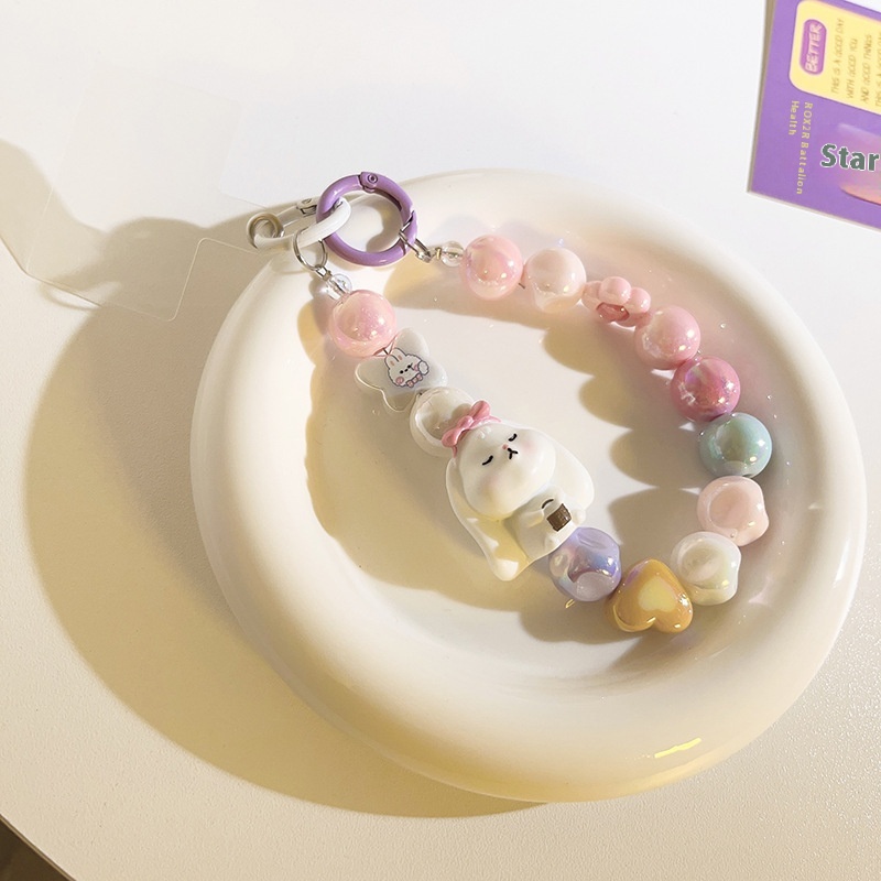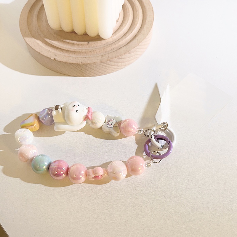 Cute Cartoon Bead Chain Hanging Chain Short Bracelet Bracelet Universal Mobile Phone Case Headphone Cover Mobile Phone Lanyard Accessories