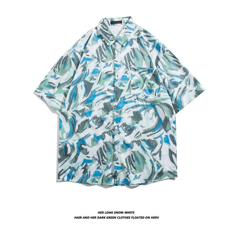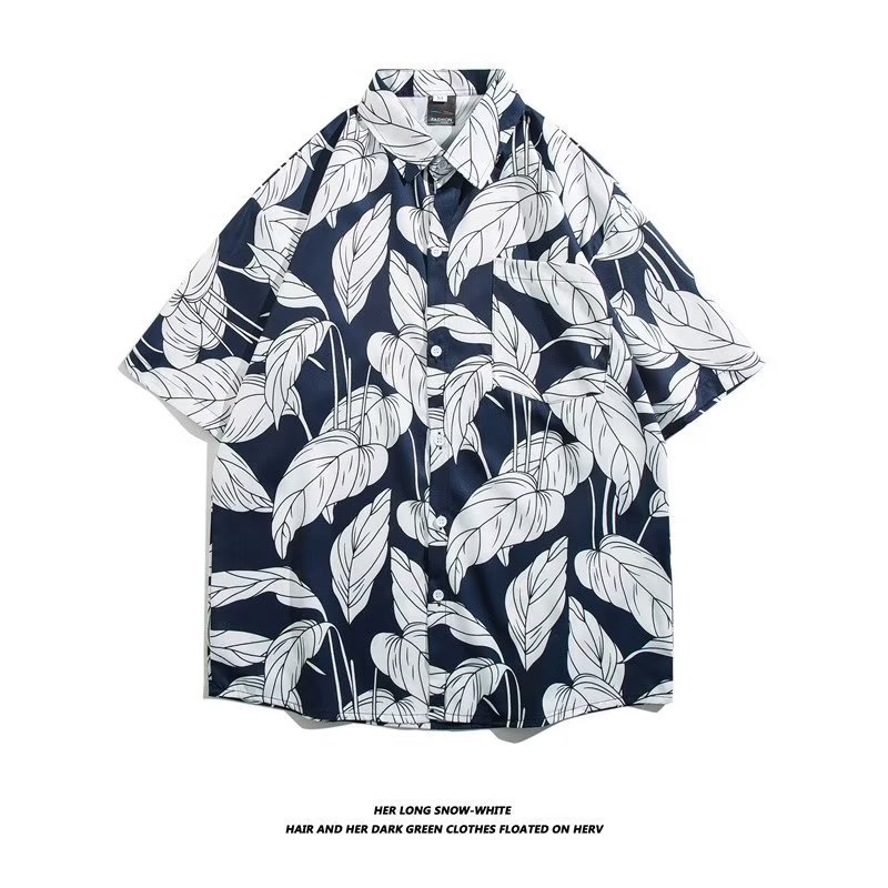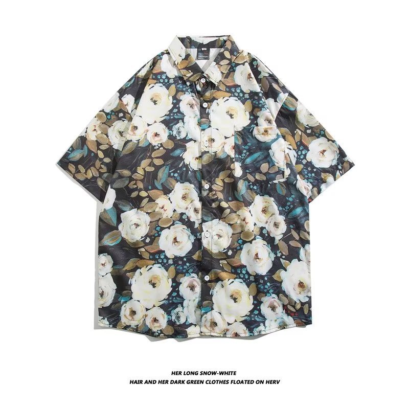 Hawaiian Flower Shirt Men's Summery Brand Hong Kong Style Short-sleeved Shirt High-end Jacket