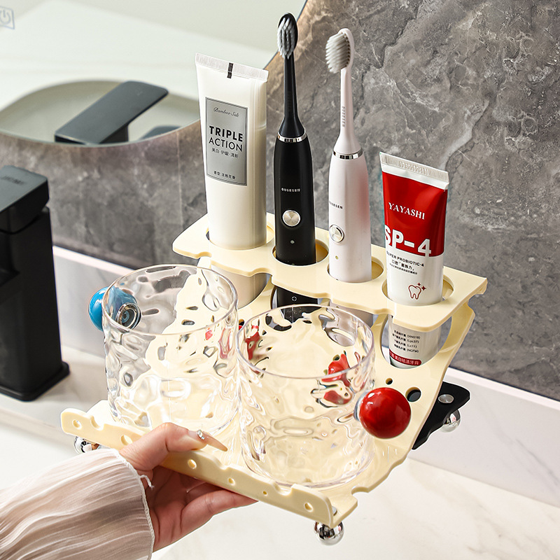 Bathroom Electric Toothbrush Rack Household Toothpaste Mouthwash Cup Light Luxury Cartoon High-end Internet Celebrity Style