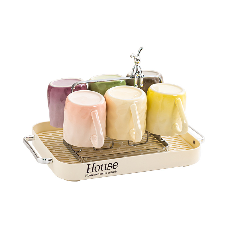 Light Luxury Water Cup Drain Tray Housewarming Cup Set Banquet Home Living Room High-value Ceramic Drinking Cup Set