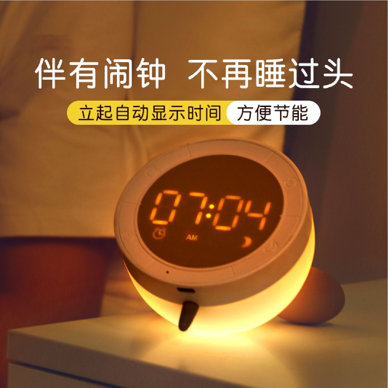 Grunt Silicone Alarm Clock With Night Light Cute Bedside Learning Electronic Digital Clock