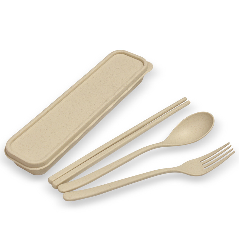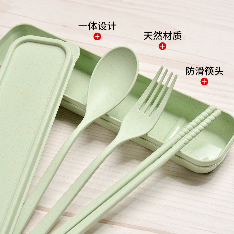 Wheat Straw Tableware Outdoor Portable Set Chopsticks Three-piece Set Spoon Storage Box Single Pack Convenient Take-out
