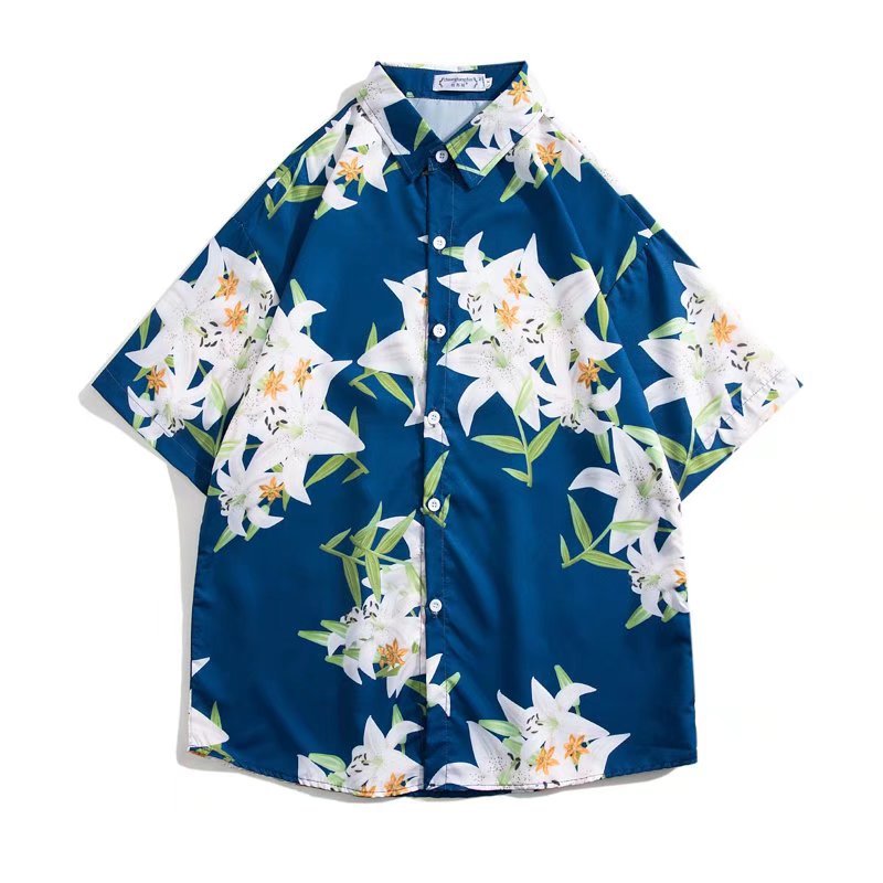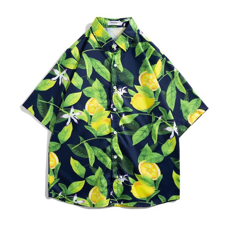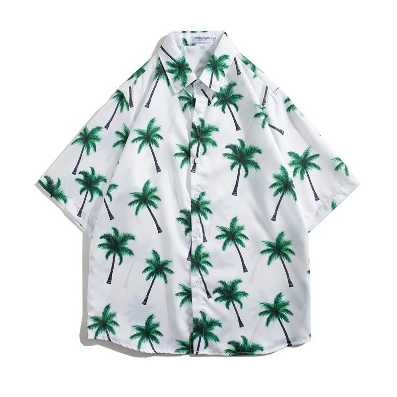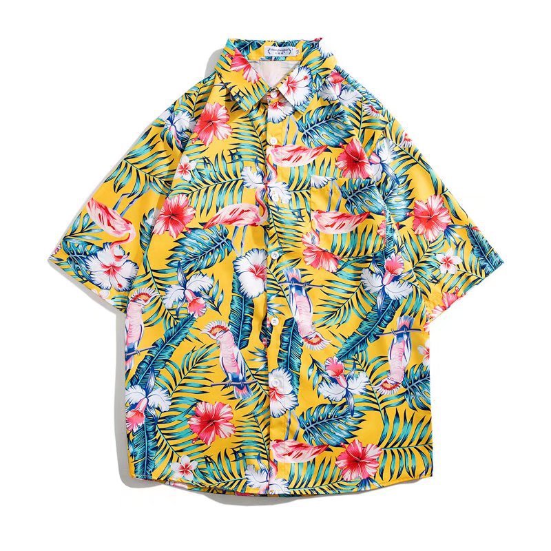 Summer Hong Kong Style Beach Chic Cartoon Personality Printed Men's Short-sleeved Shirt Loose Versatile Floral Shirt Travel Wear