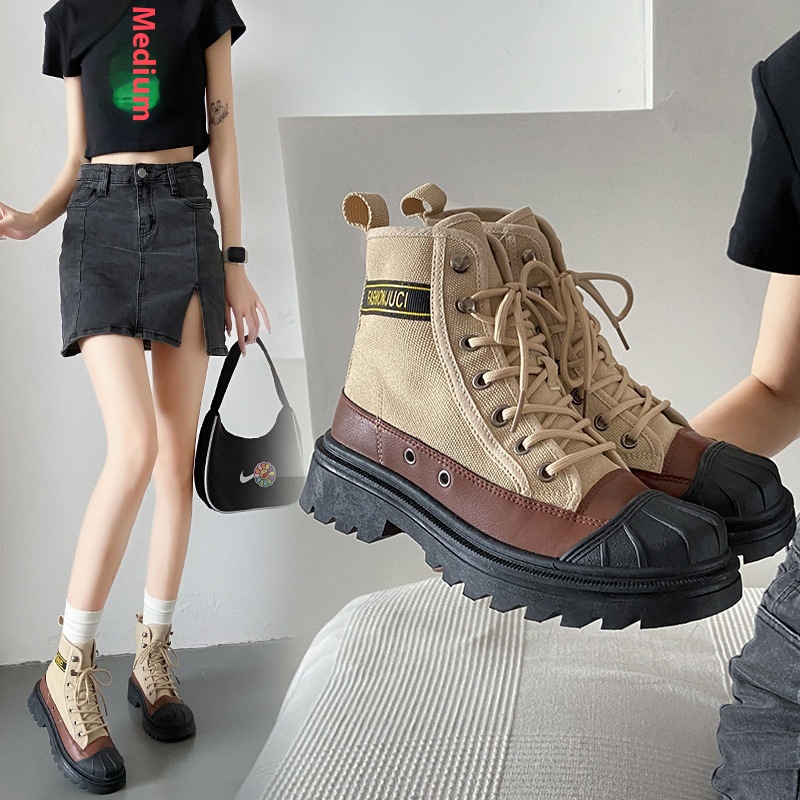 Autumn Martin Boots Korean Version All-match Motorcycle Bootsy Thick-soled Canvas Casual Student Boots J C D01