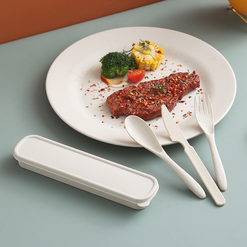 Wheat Straw Steak Knife,Fork,Spoon And Plate Set Western Cutlery Two-piece Set Plastic Spoon And Fork Three-piece Set