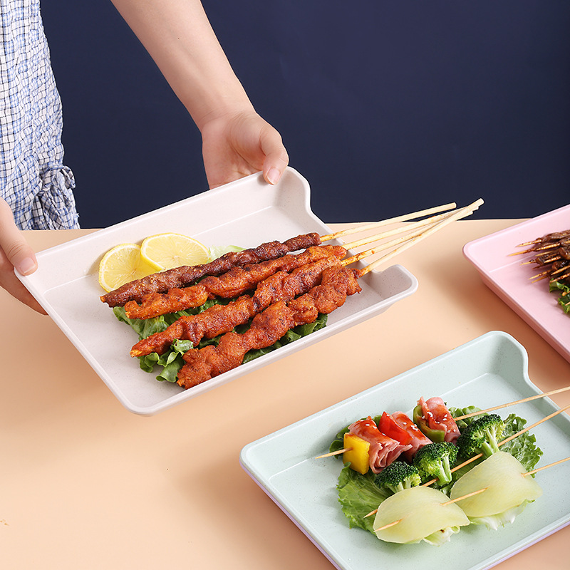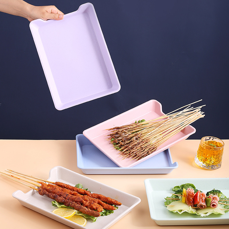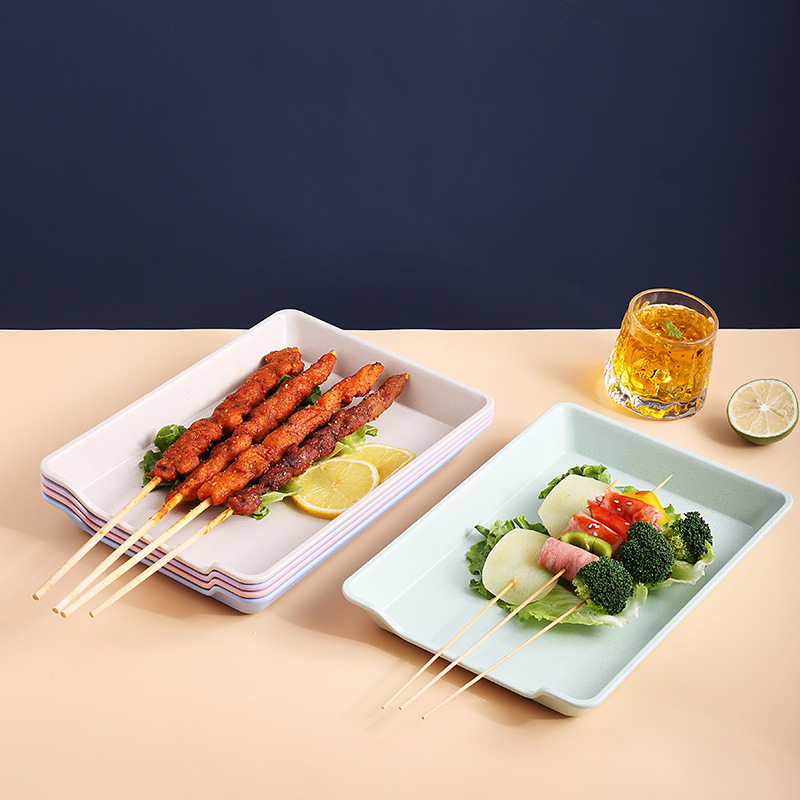 Wheat Tableware Hot Pot Skewers Plate Plastic Rectangular Barbecue Skewers Plate Commercial Vegetable Selection Tray Display Cabinet Display