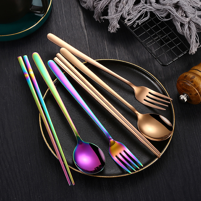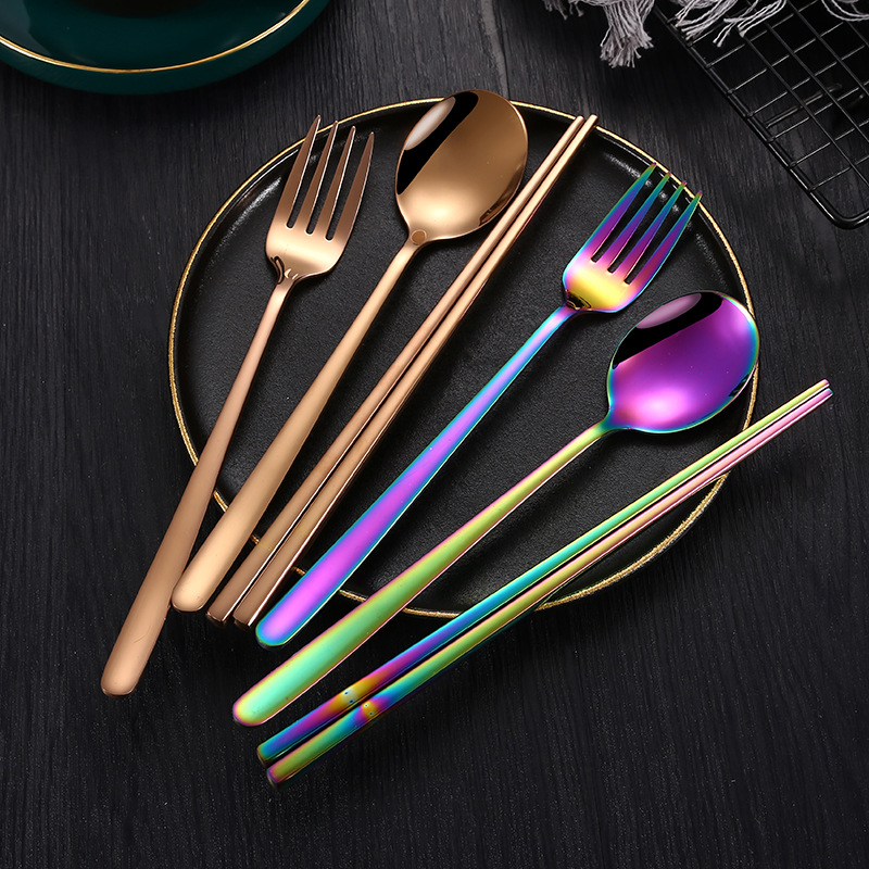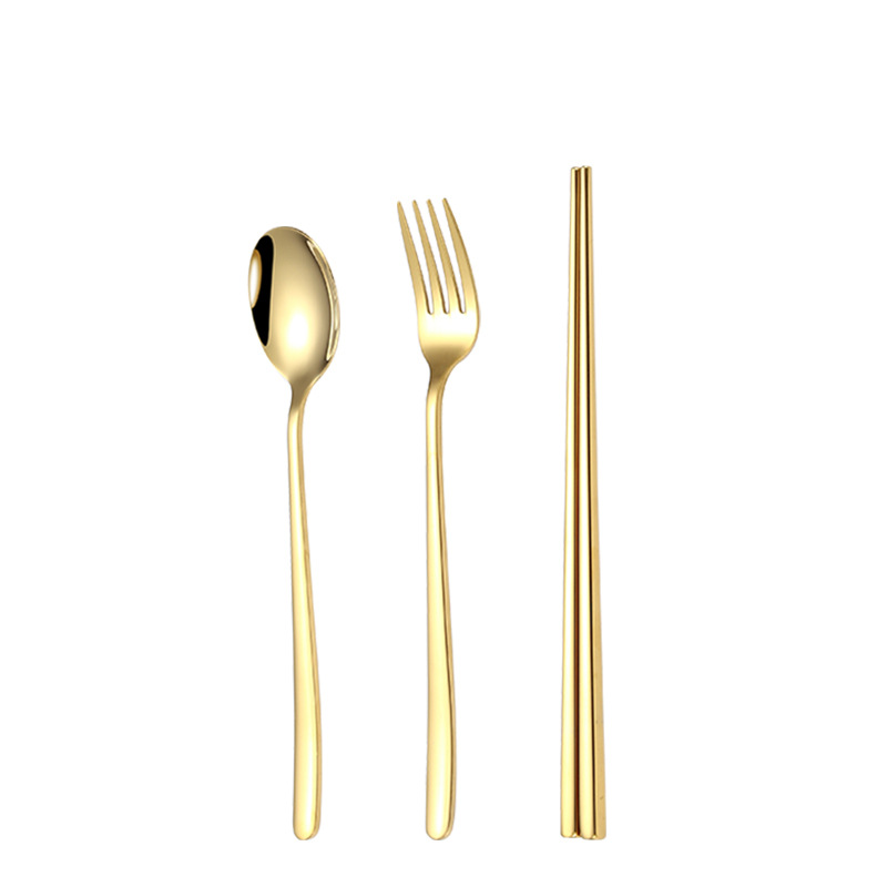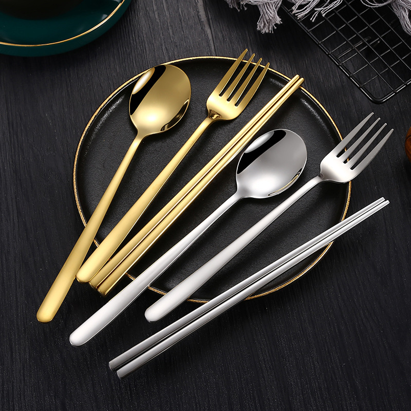 304 Creative Stainless Steel Korean Knife,Fork And Spoon Simple Gold-plated Spoon Fork Chopsticks Gift Tableware Set