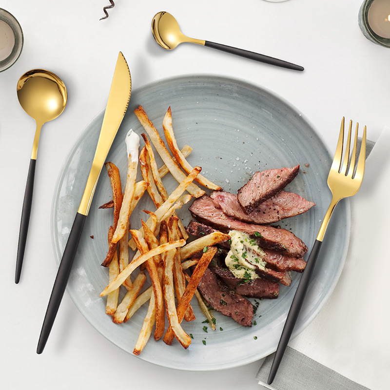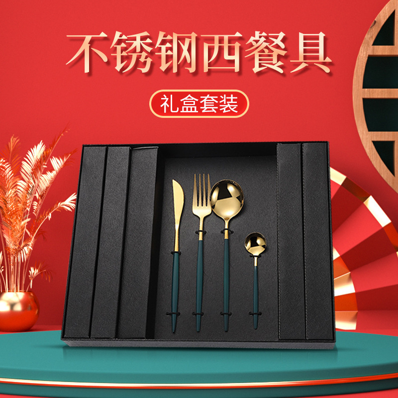 24-piece Cutlery Set Portuguese Stainless Steel Knife,Fork,Spoon,Dessert Spoon,Western Tableware Gift Box Set
