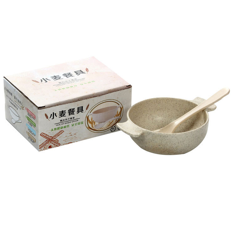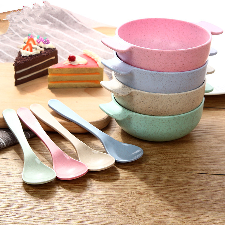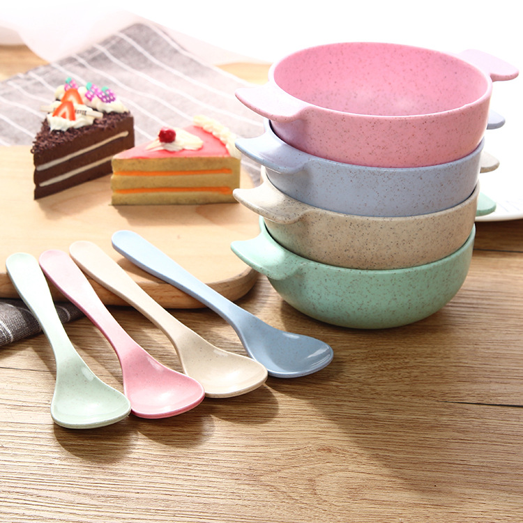 Creative Wheat Straw Tableware Set Cute Multifunctional Bowl And Spoon Four-piece Set Children's Convenient Tableware Set