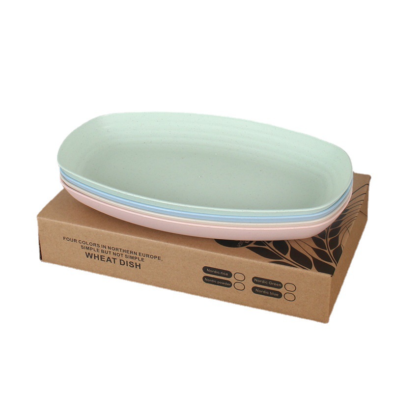 4 Fish Trays With Wheat Straw For Home Use Large Creative European Oval Rectangular Dumpling Tray Fruit And Vegetable Tray