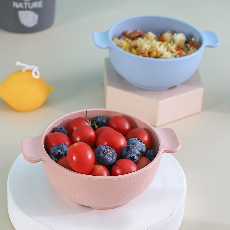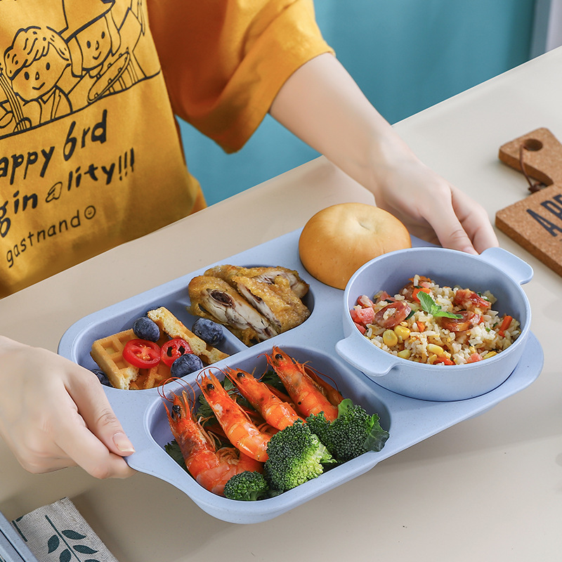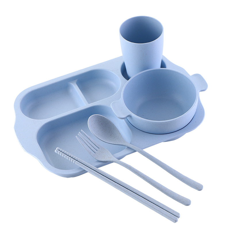 Wheat Kindergarten Divided Plate Six-piece Set Anti-fall Chopsticks Fork Spoon Cup Rice Bowl Children's Tableware Set