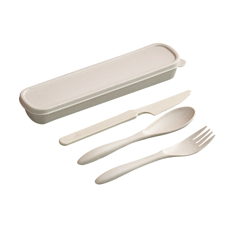 Wheat Straw Steak Knife,Fork,Spoon And Plate Set Western Knife And Fork Cutlery Two-piece Set Plastic Spoon Fork Three-piece Set