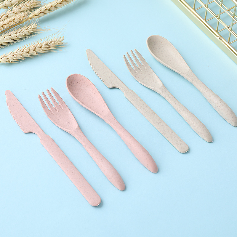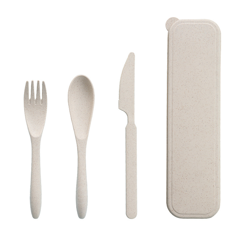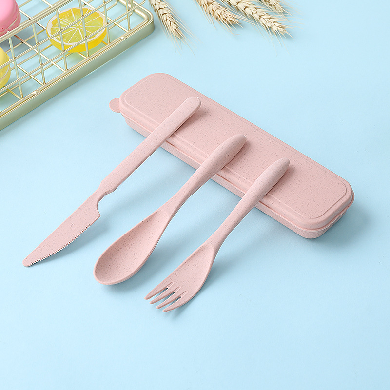Creative Wheat Straw Children's Portable Tableware Set Three-piece Outdoor Travel Student Children's Plastic Knife,Fork And Spoon