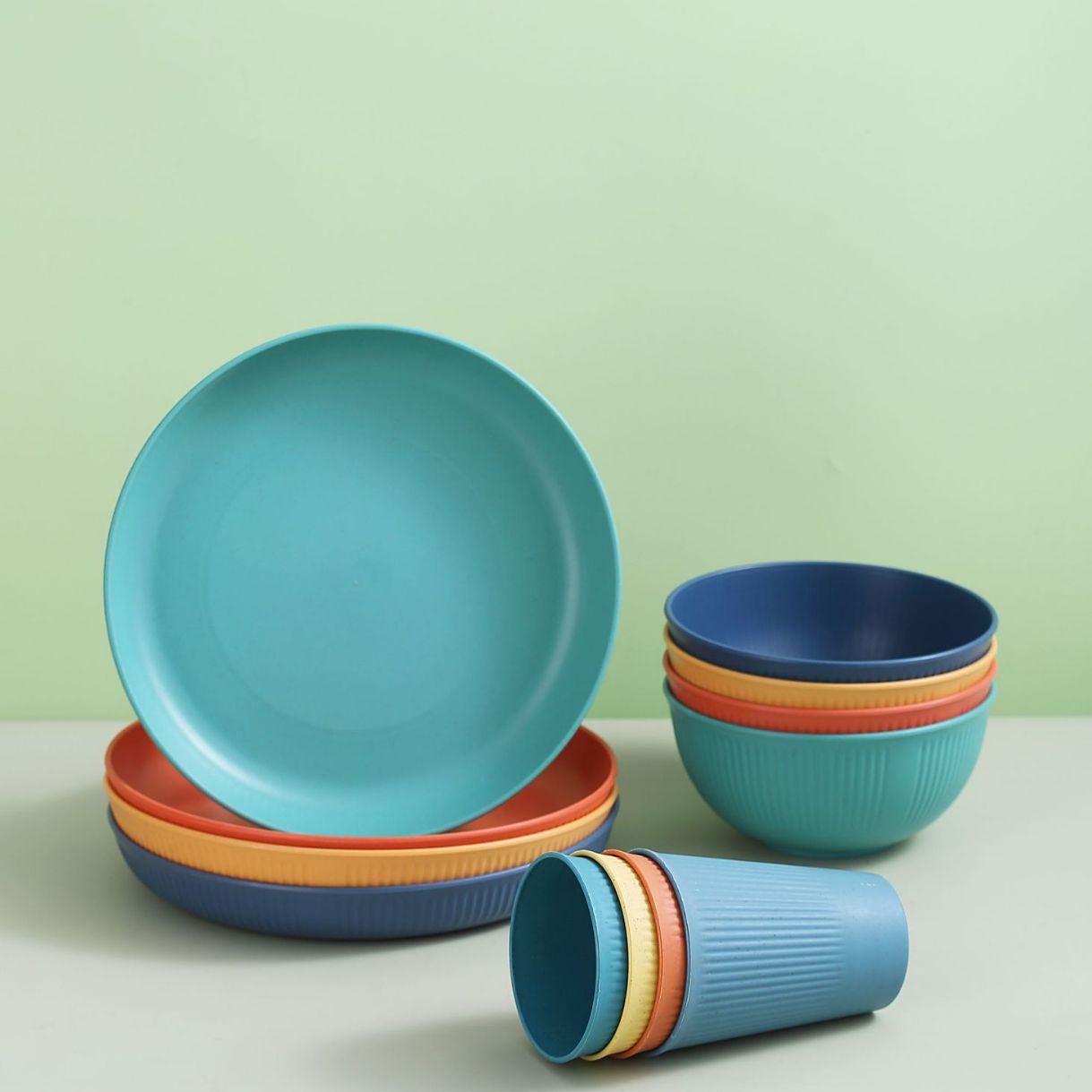 's High-looking Bowl And Plate Combination Household Set Wheat Straw Simple Eating Bowl,Cup And Plate Tableware