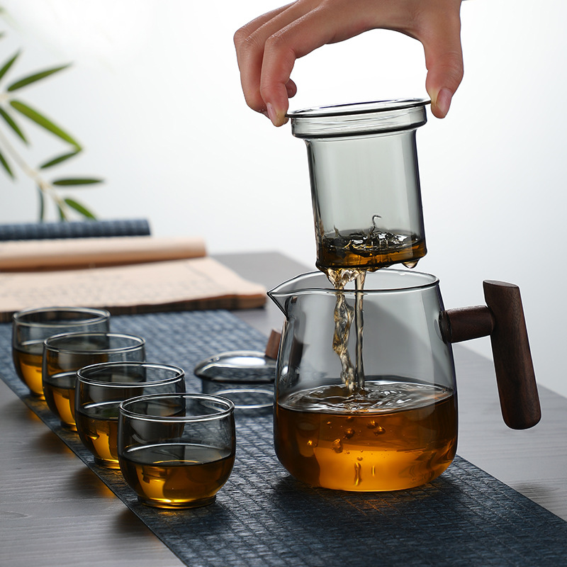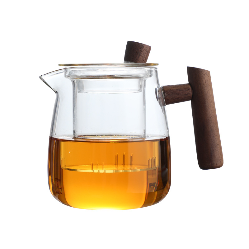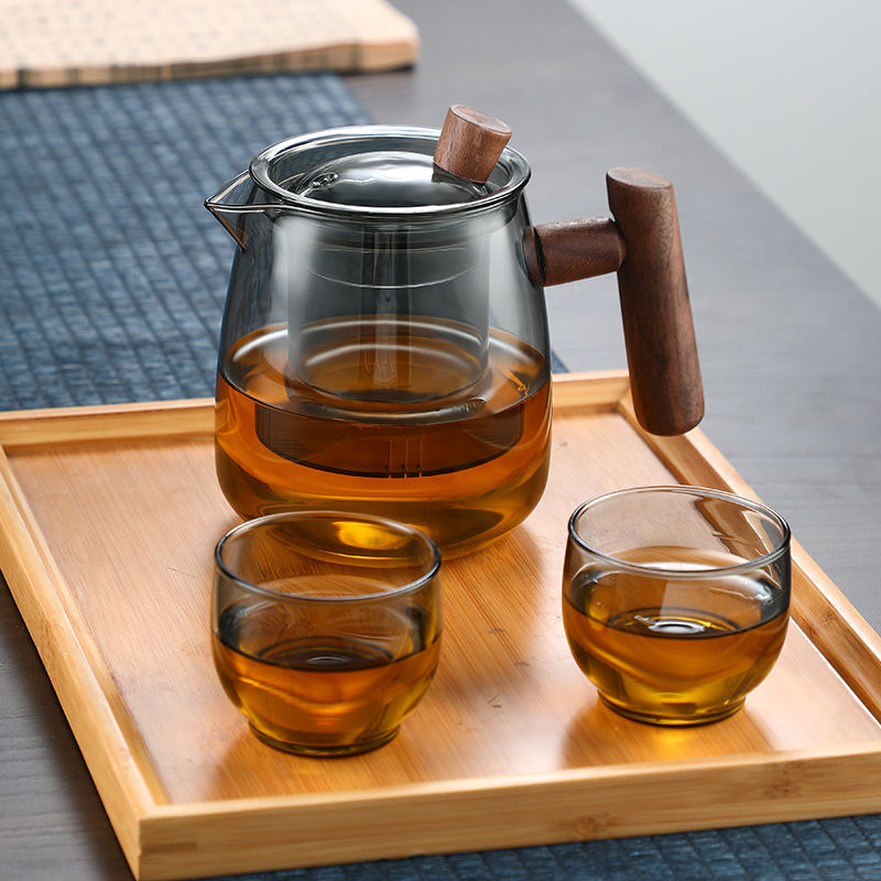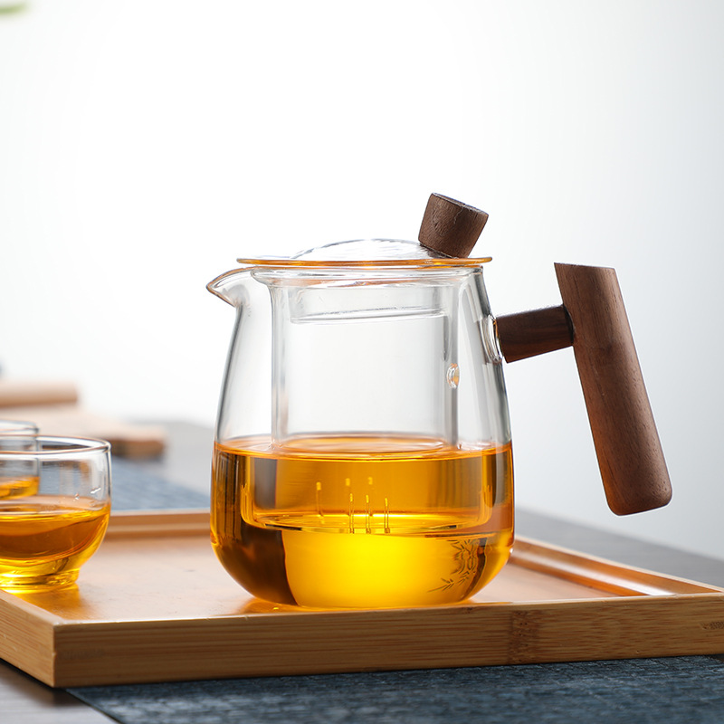 Heat-resistant Yunqu Teapot With Wooden Glass Handle,Thickened Glass,High Temperature Resistance,Heatable Teapot,Tea Set Set With Wooden Handle