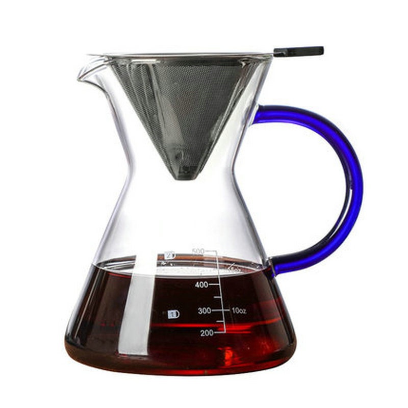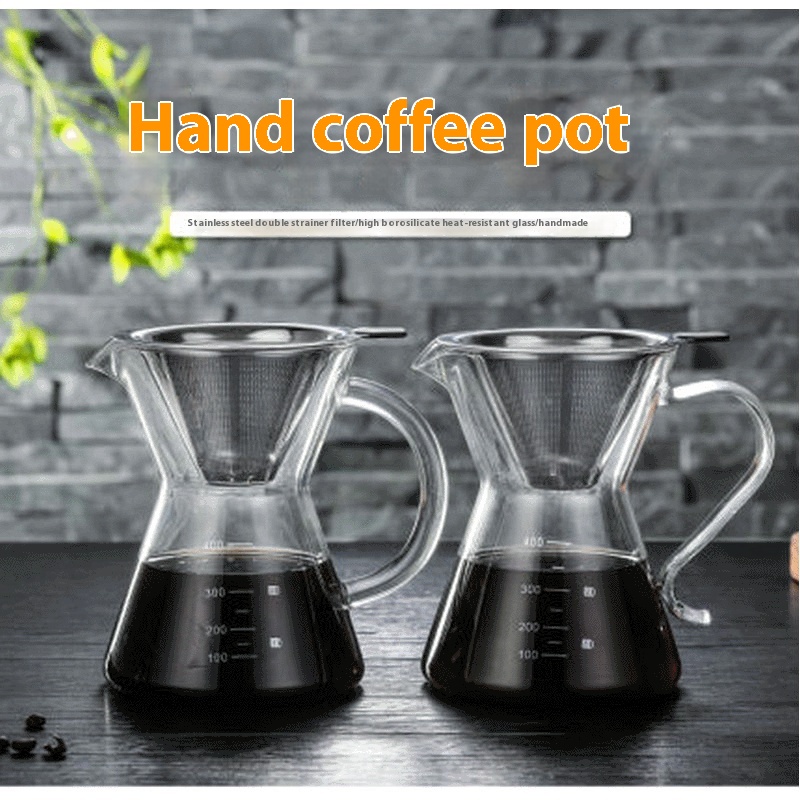 Heat-resistant Borosilicate Glass Coffee Pot With Handle Set Stainless Steel Coffee Filter Transparent Coffee Sharing Pot