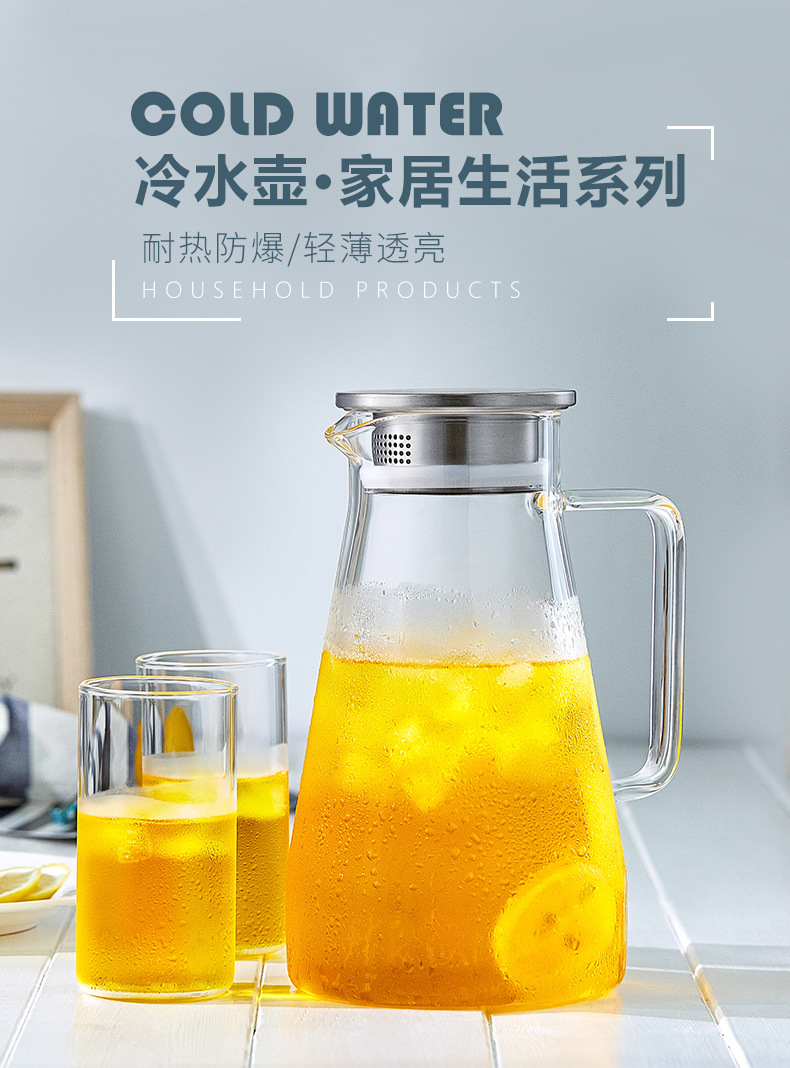 Household Cold Water Bottle Glass Heat-resistant High Temperature Air-cooling Boiled Water Cup Tie Pot Explosion-proof Large-capacity Transparent Water Bottle