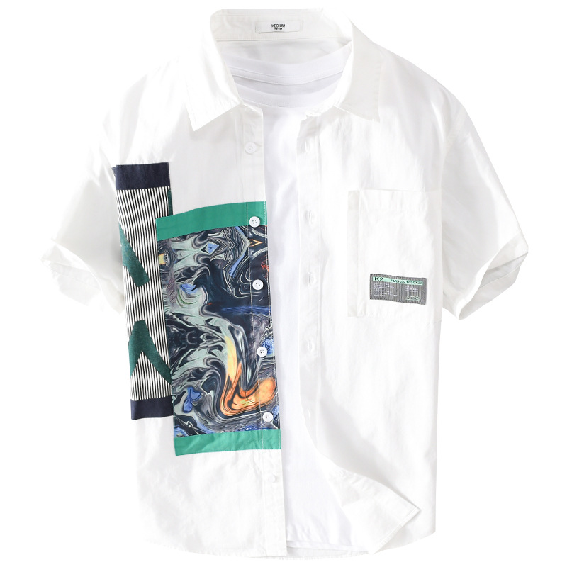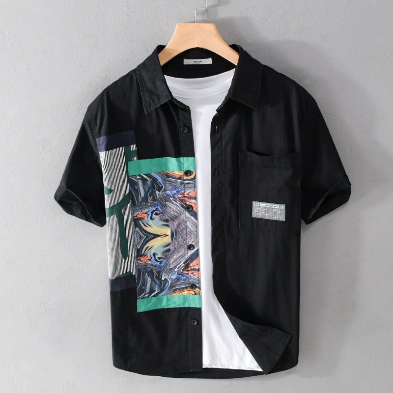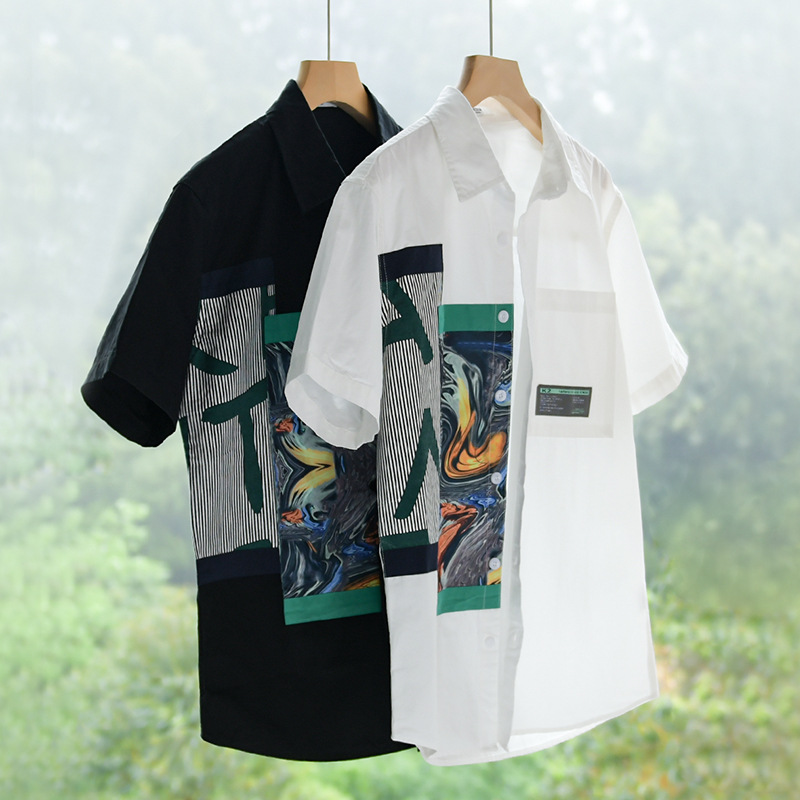Summery Men's Short-sleeved Shirts Fashionable Popular Printing Handsome Casual Loose Youth Versatile Men's Shirts920