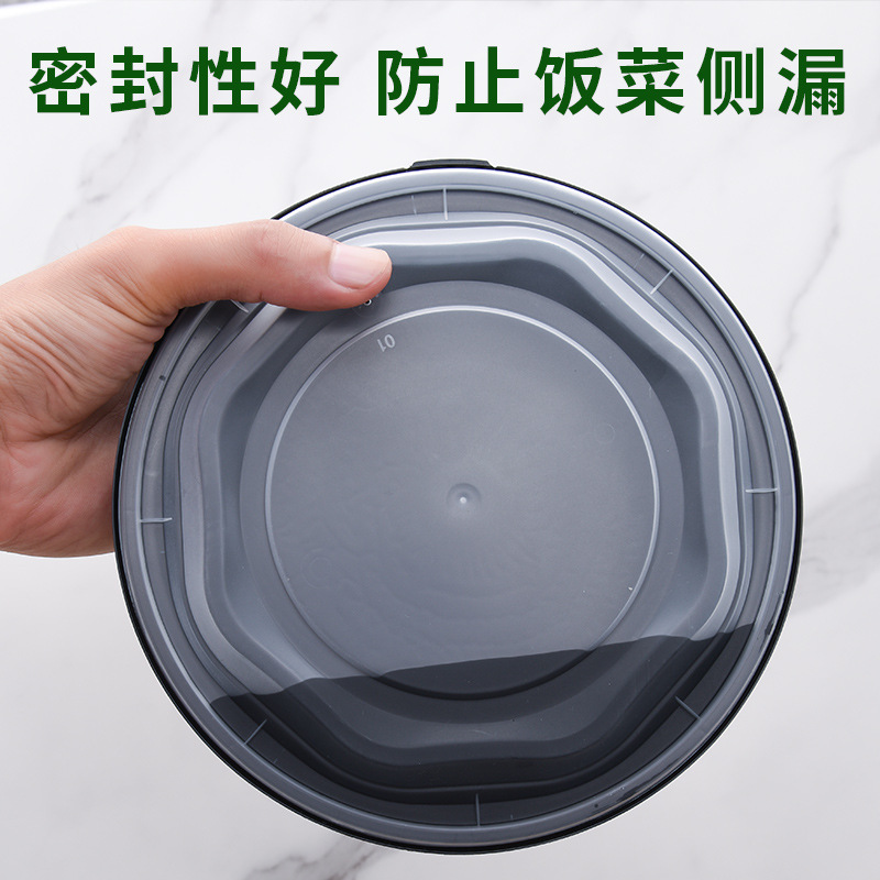 Disposable Plastic Packed Lunch Box Anti-theft And Leak-proof Fast Food Box Take-out Box1000ml Large Capacity Round Bowl