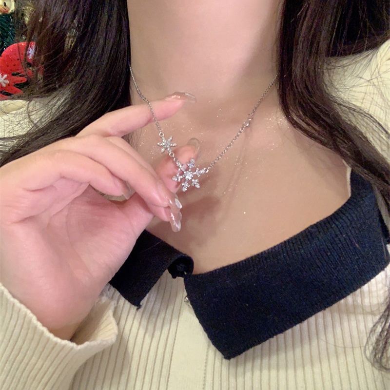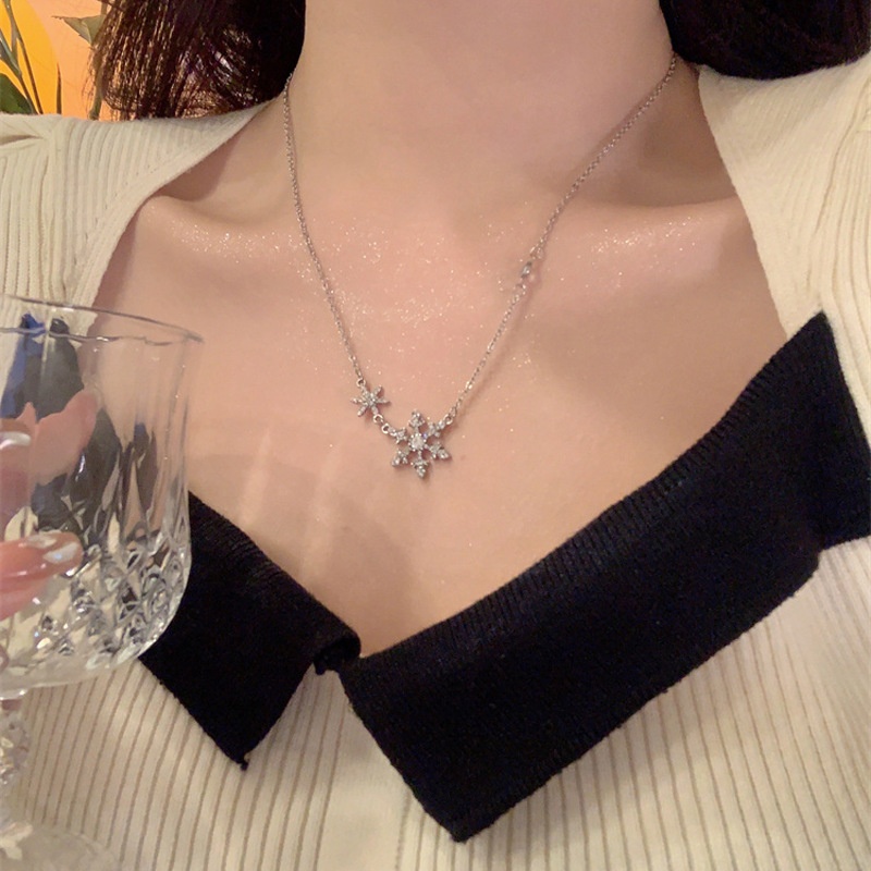 Sweet Snowflake Necklace Autumn And Winter Style High-end Light Luxury Design Clavicle Chain Simple Necklace For Women