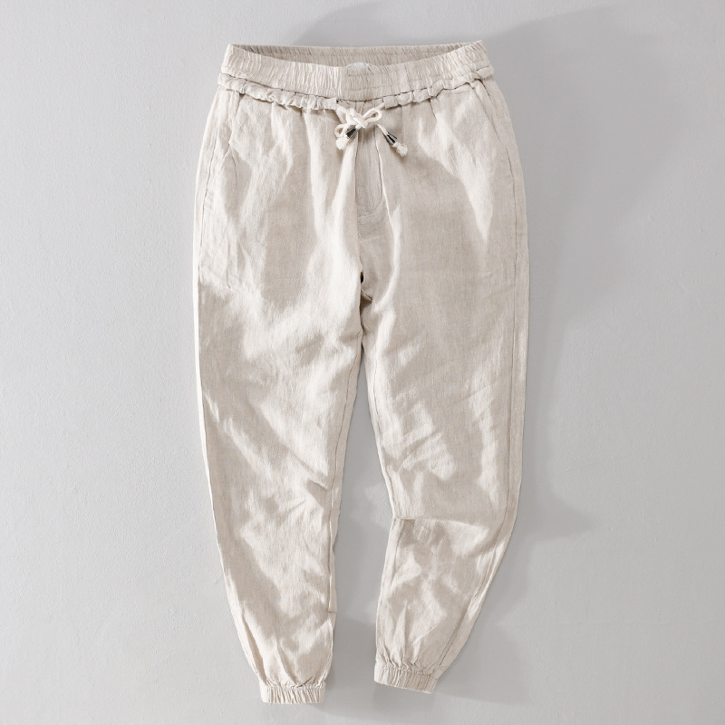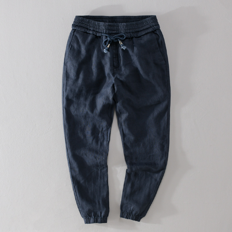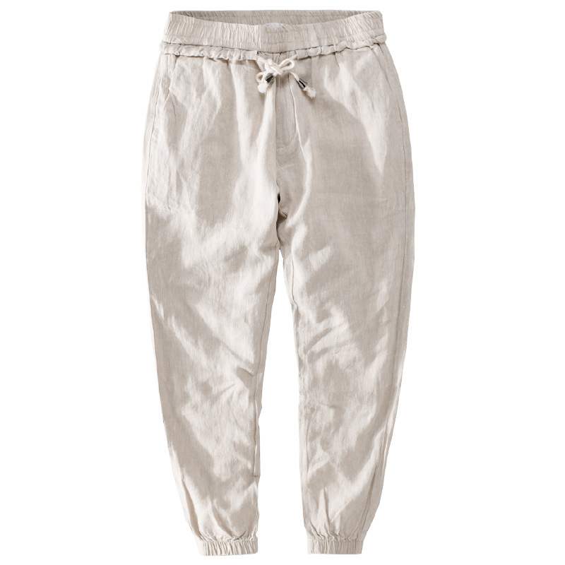 Linen Pants Men's Loose Pants Harem Pants Drawstring Sports Pants Carrot Pants Chinese Style Men's Cotton And Linen Nine-point Pants7410