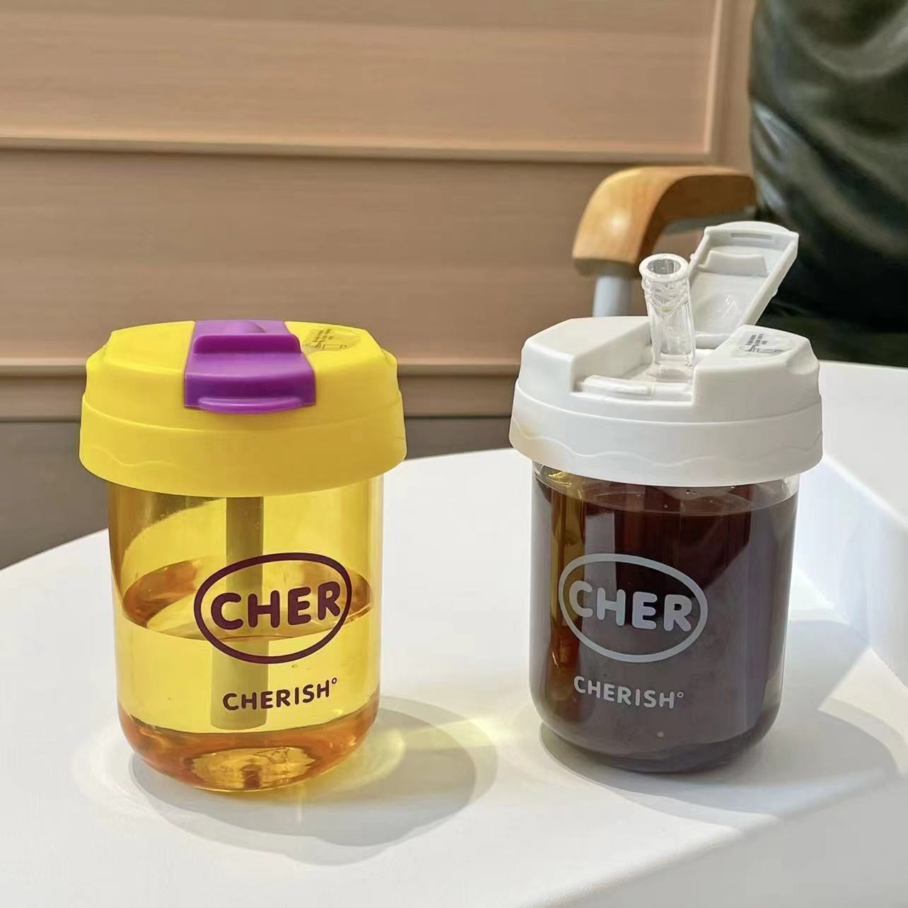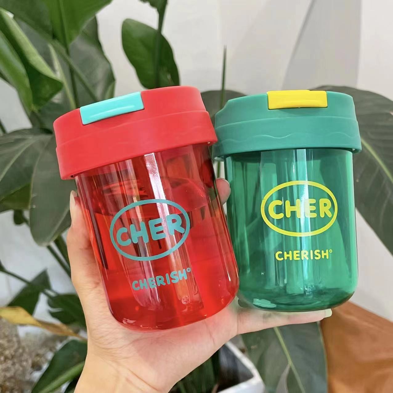 Girls'Mini Ton Ton Cup Simple Plastic Cup With Straw Children's Straw Cup Handy Cup High-Looking Coffee Cup