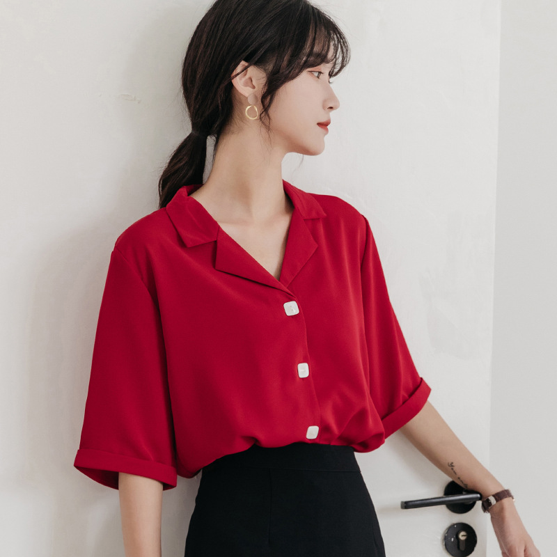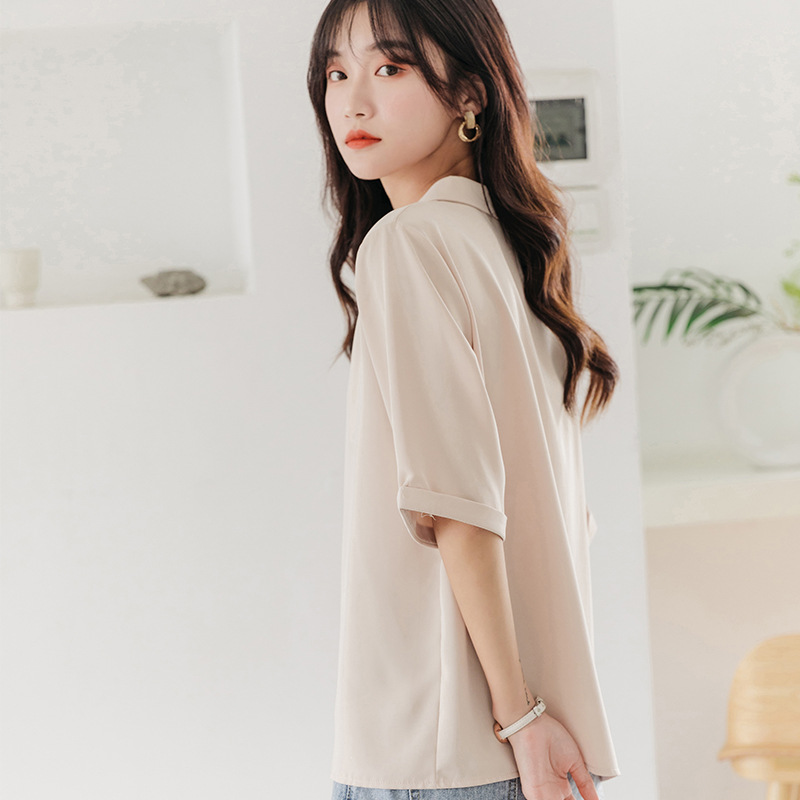 Suit V-neck Chiffon White Shirt Women's Short-sleeved Summer Korean Version Loose Professional Temperament Design Five-point Sleeve Shirt