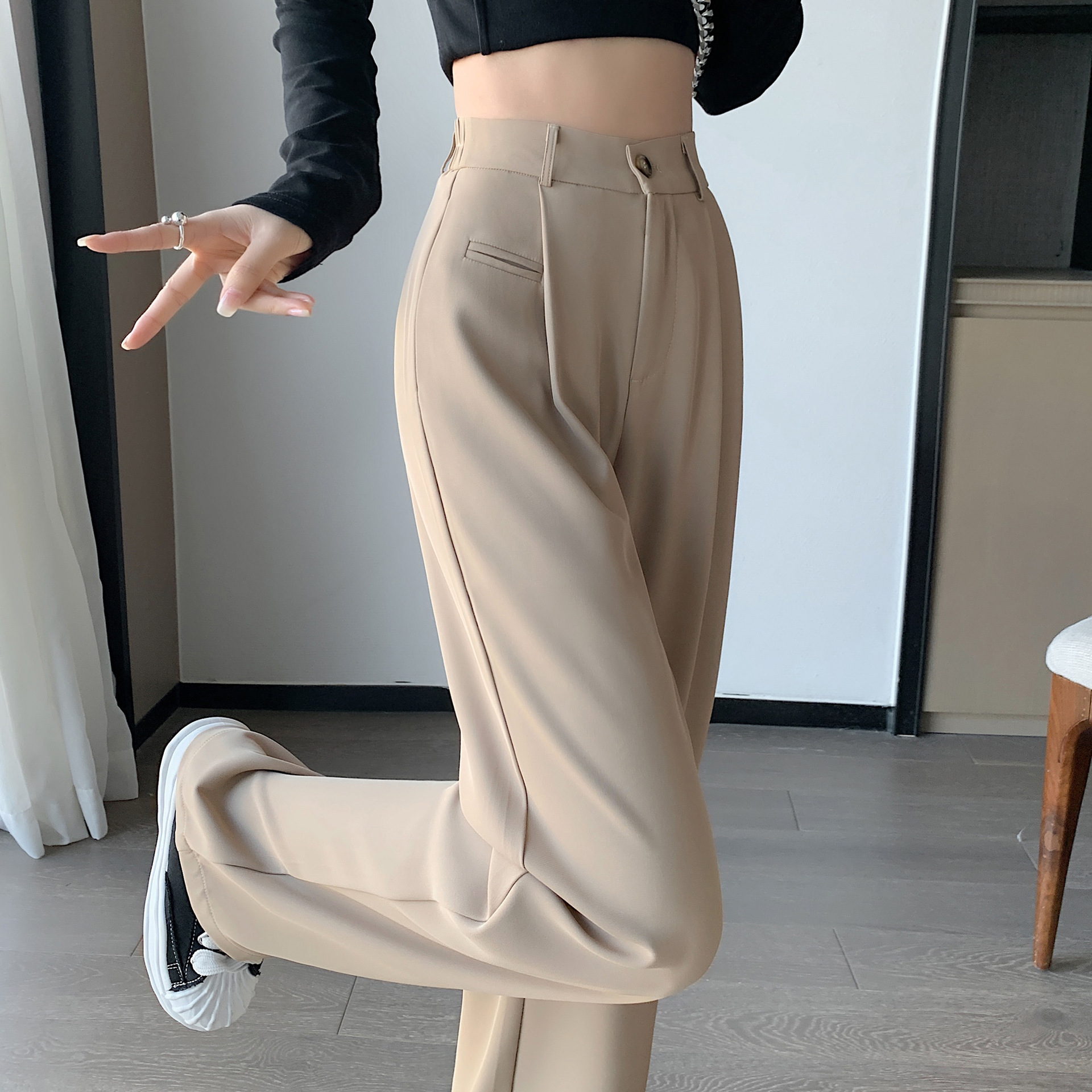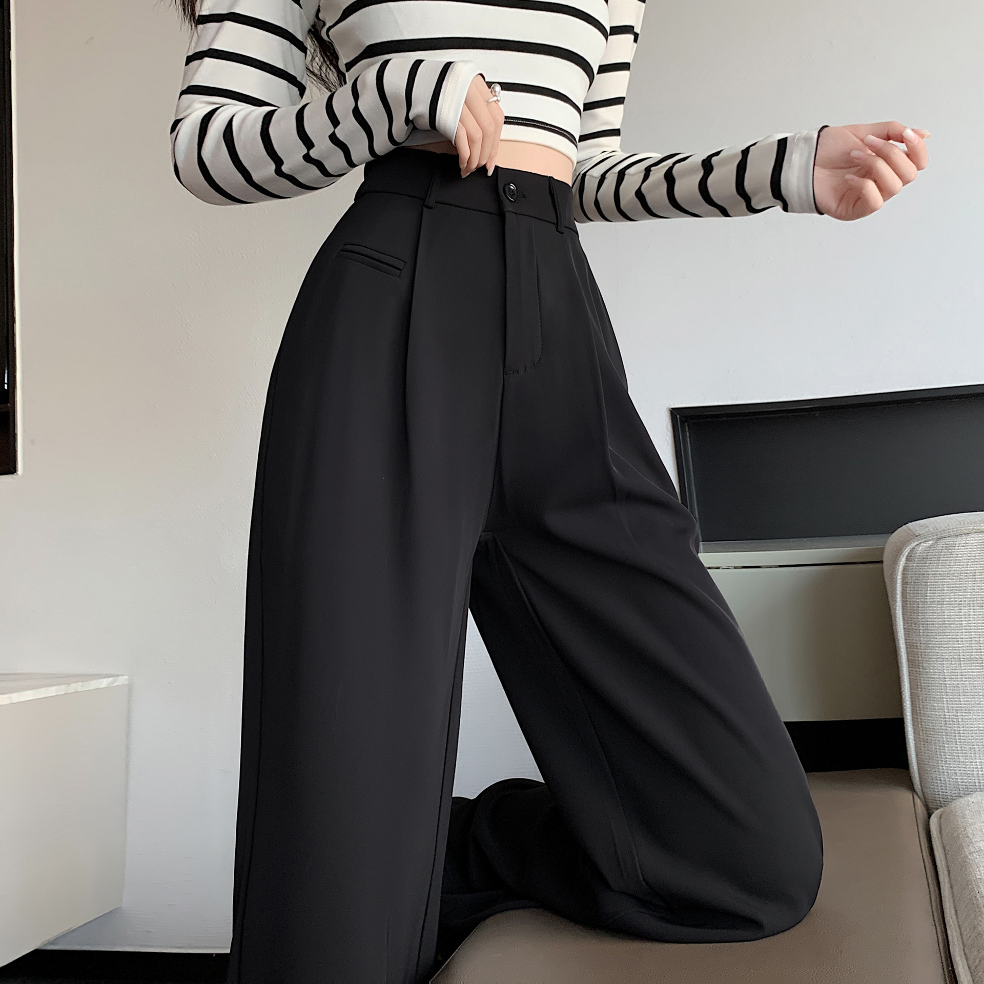 High-end Suit Trousers For Women Spring And Autumn High-waisted Wide-leg Pants Loose Slimming Narrow Version Floor-length Trousers