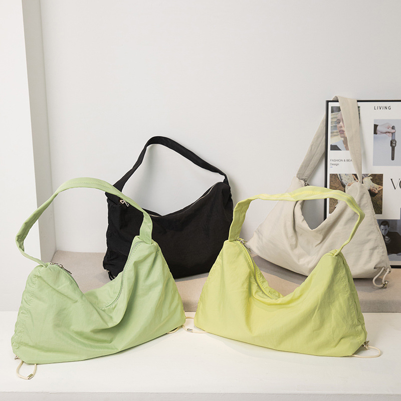 Japanese And Korean Large-capacity Nylon Drawstring Crossbody Bag Shopping Bag Armpit Bag Commuter Tote Women's Bag Simple And Versatile