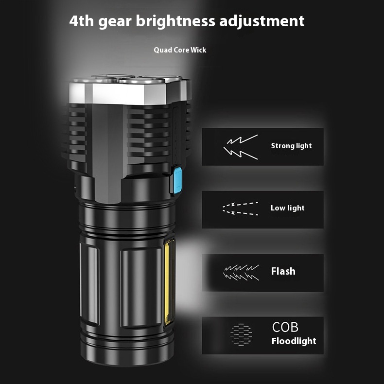 Cob Side Light Multi-function Strong Light Flashlight Outdoor Led Portable Home U S B Rechargeable Flashlight