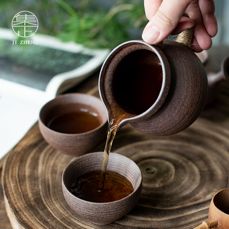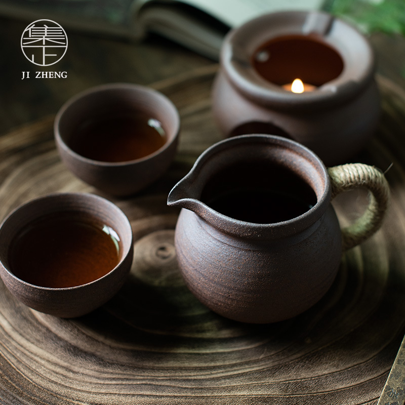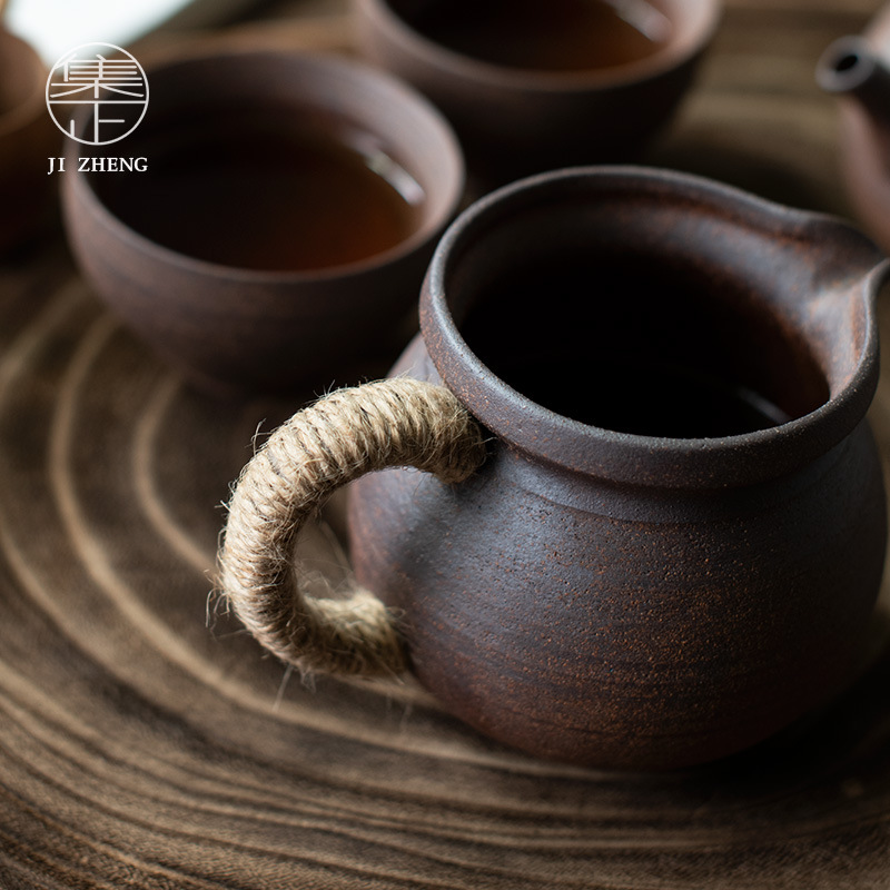 Coarse Pottery Unglazed Fairness Cup Kung Fu Tea Set Tea Ceremony Accessories Tea Divider Home Japanese Retro Hemp Rope Equalizing Cup Tea Sea