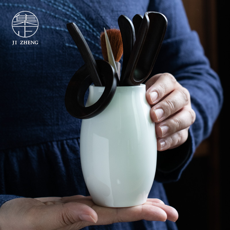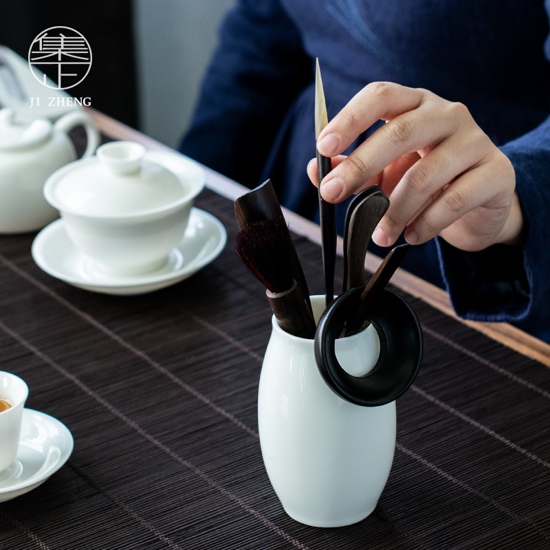 Dehua White Porcelain Complete Set Of Tea Ceremony Six Gentlemen Kung Fu Tea Set Tea Ceremony Accessories Ceramic Tea Ceremony Tube Teaspoon Pot Pen