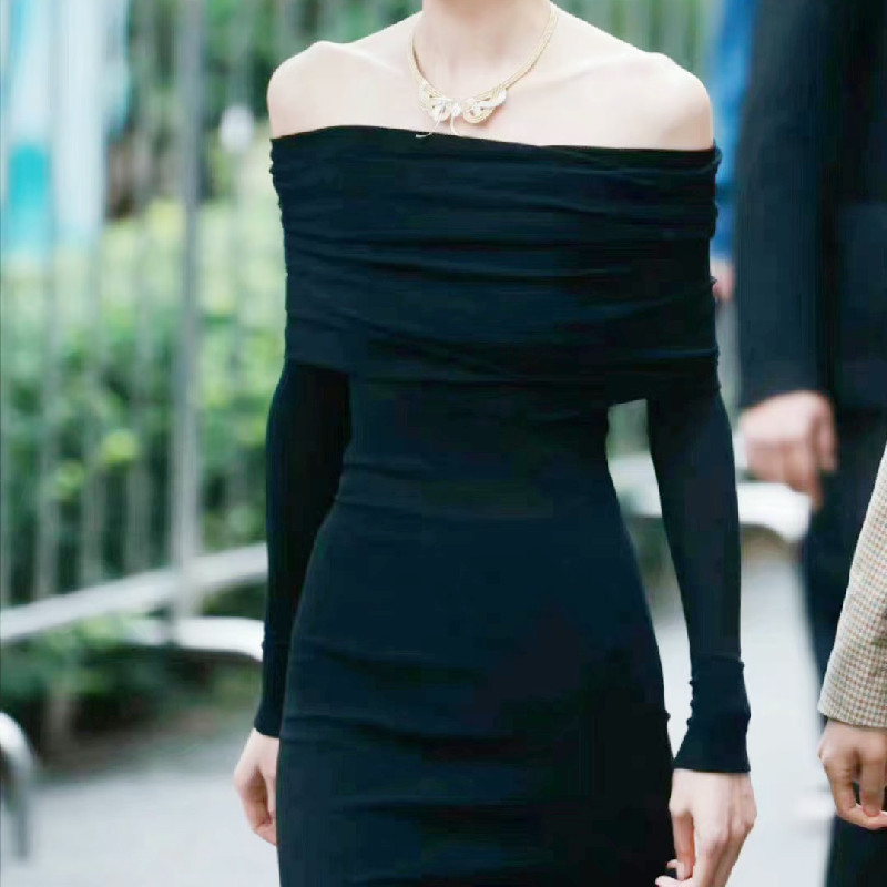 Independent Station Autumn Women's Clothing Liu Wen's Same Sexy One-shoulder French Temperament Slim Dress