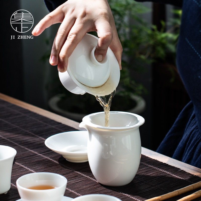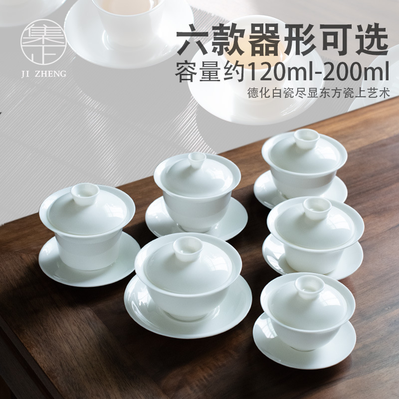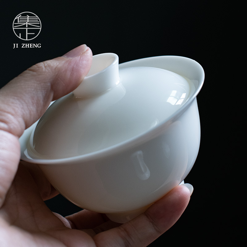 Dehua White Porcelain Sancai Bowl Mutton Fat Jade Porcelain Kung Fu Tea Set Tea Bowl Single Bowl Home Simple Tea Bowl Customization