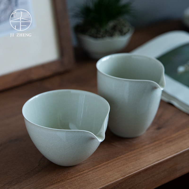 Vegetable Ash Fair Cup Ancient Celadon Glaze Japanese Style Antique Tea Sea Single Even Cup Ceramic Kung Fu Tea Set Handmade Tea Divider