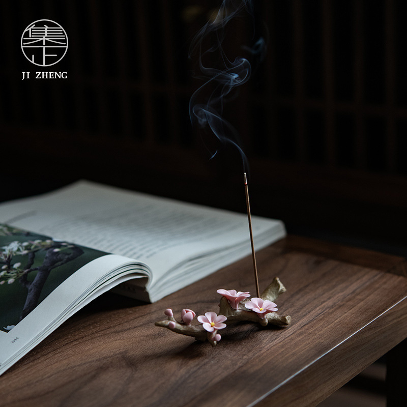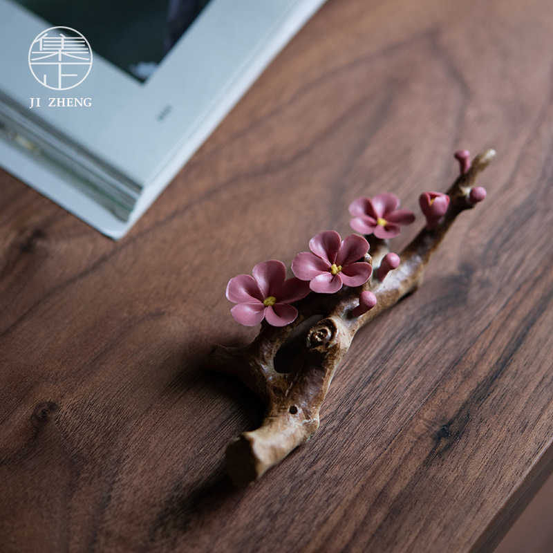 Hand-kneaded Ceramic Plum Blossom Small Ornaments,Pure Handmade Porcelain Flower Pens,Tea Ceremony Tea Pet Small Incense Sticks,Elegant Play Small Objects