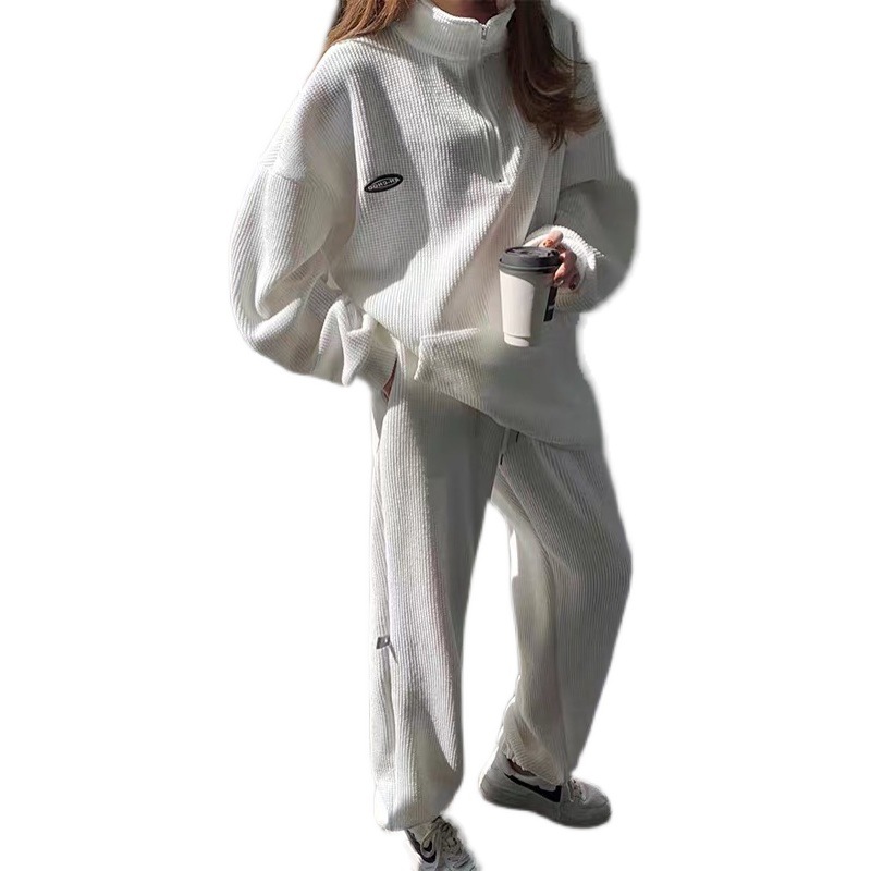 Spring Waffle Sweatshirt Suit For Women,Casual And Fashionable,Salty Or Sweet,Street Sportswear Two-piece Set