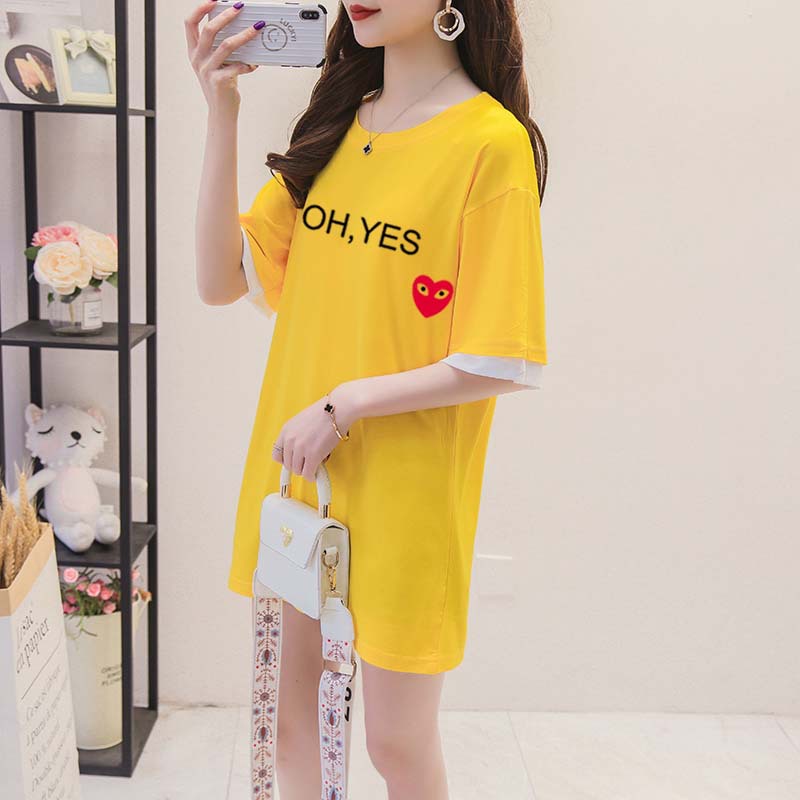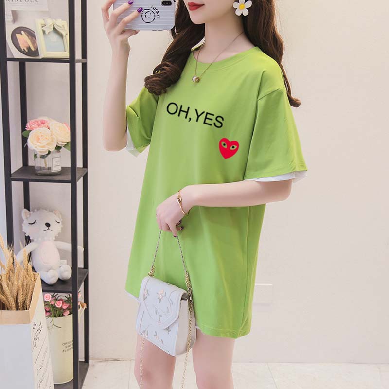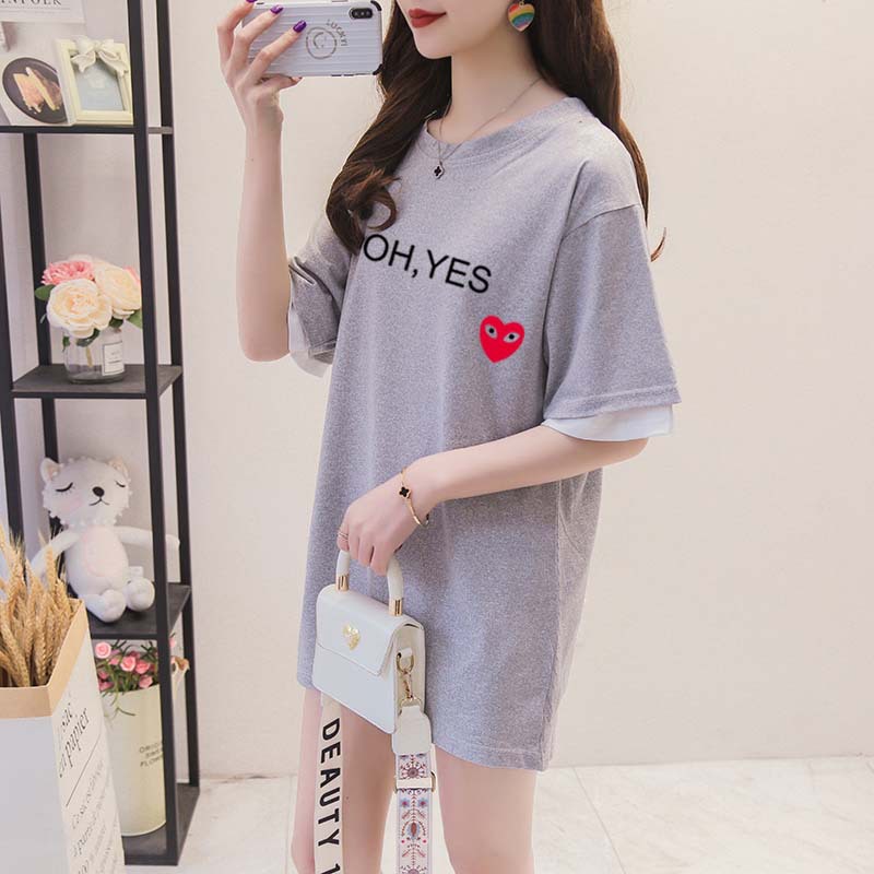 One Piece Of Drop-shipping Women's Clothing Internet Celebrity Letter Printing Mid-length Loose Large Size Fake Two-piece T-shirt Women's Summer