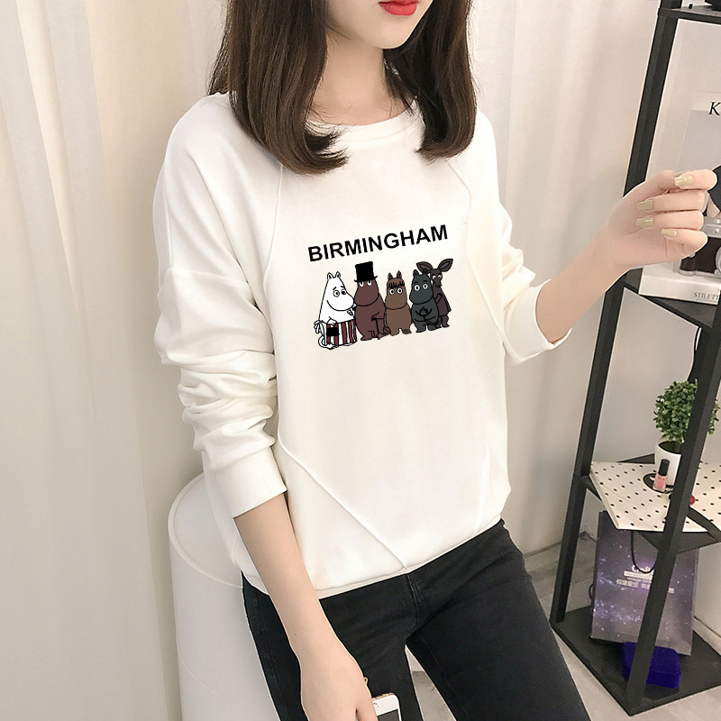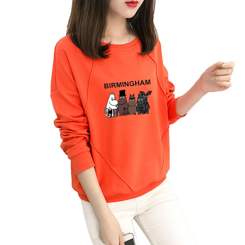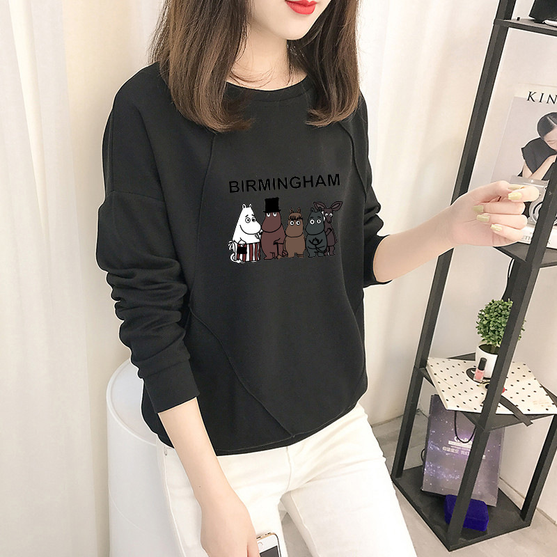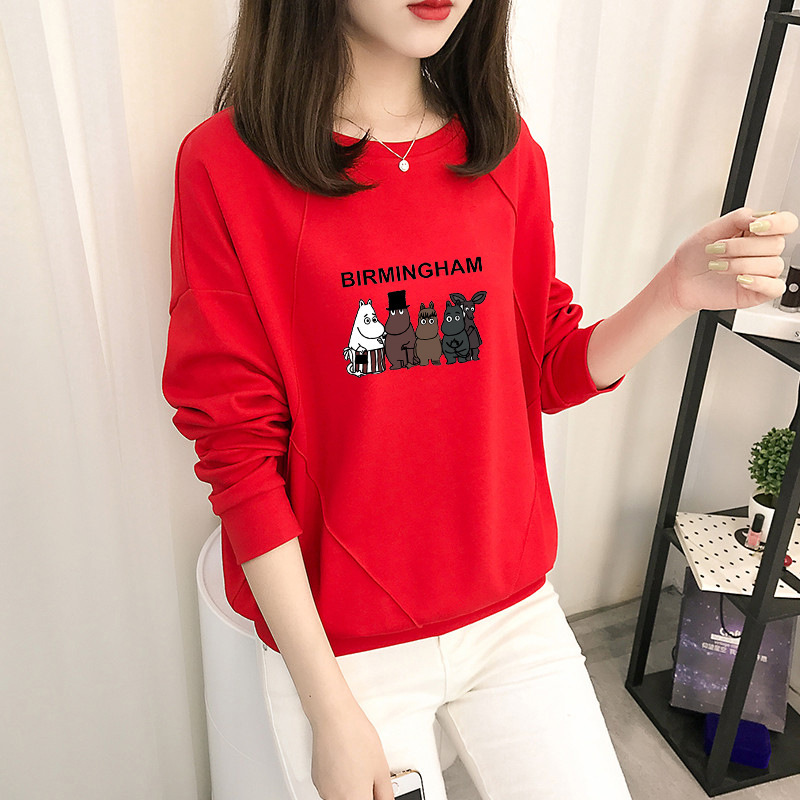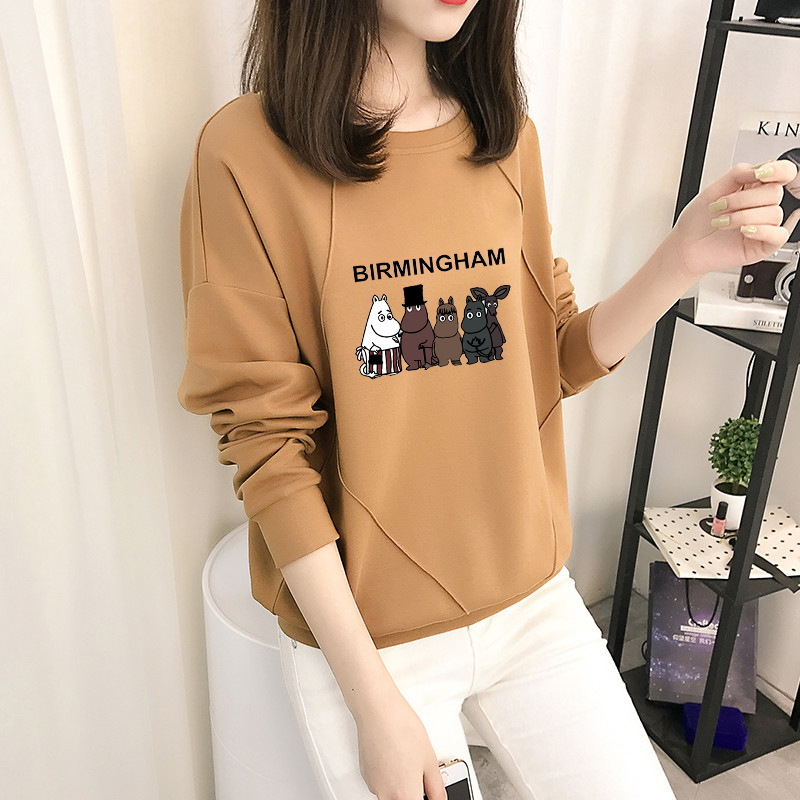 Cotton-containing Autumn Women's Sweatshirt Women's Korean Version Loose Thin Sectiony Cartoon Animation Top