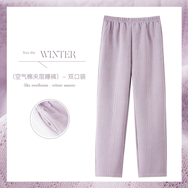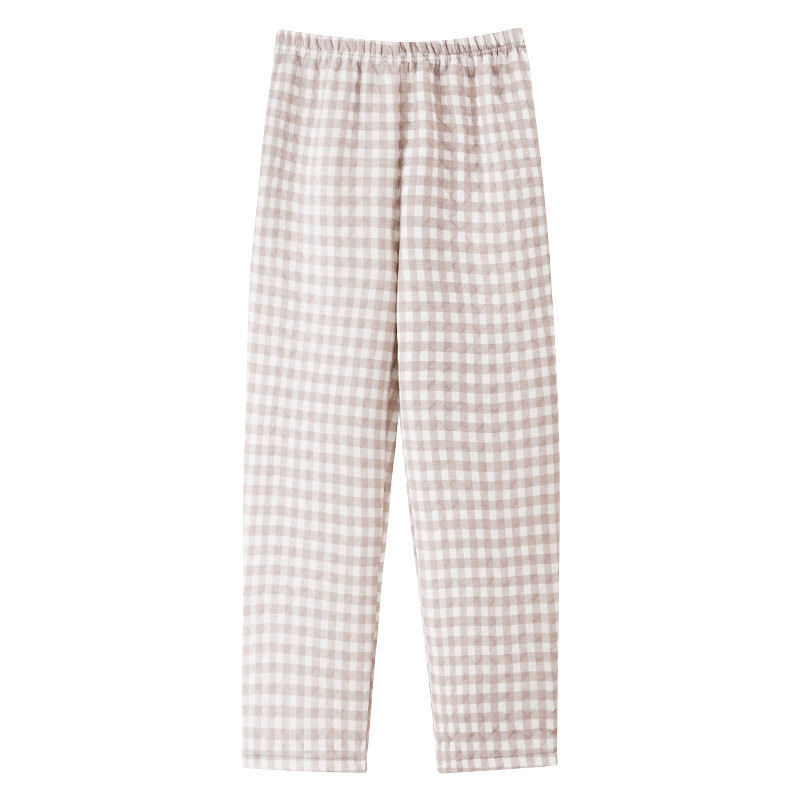 Air Cotton Sandwich Pajamas Women's Thickened Pure Cotton Trousers Plaid Large Size Autumn And Winter Thin Quilted Warm Home Pants