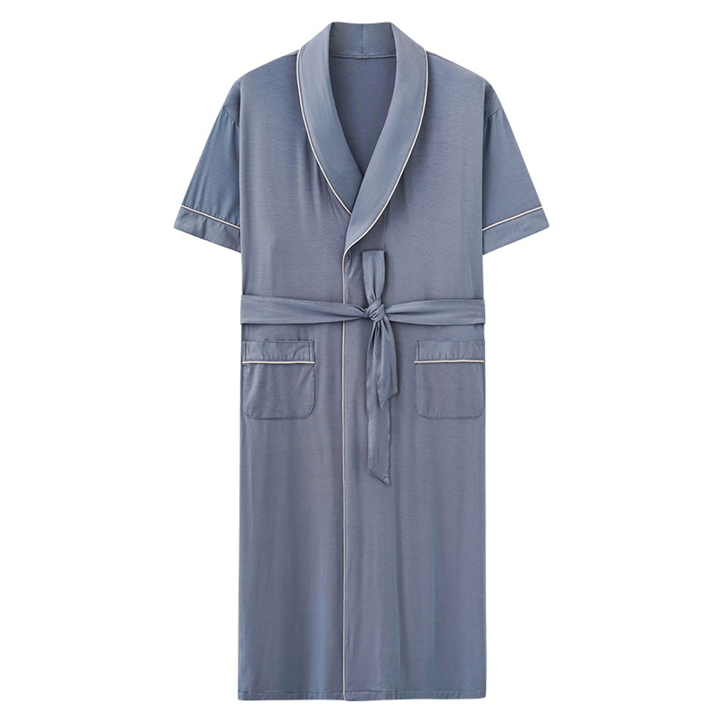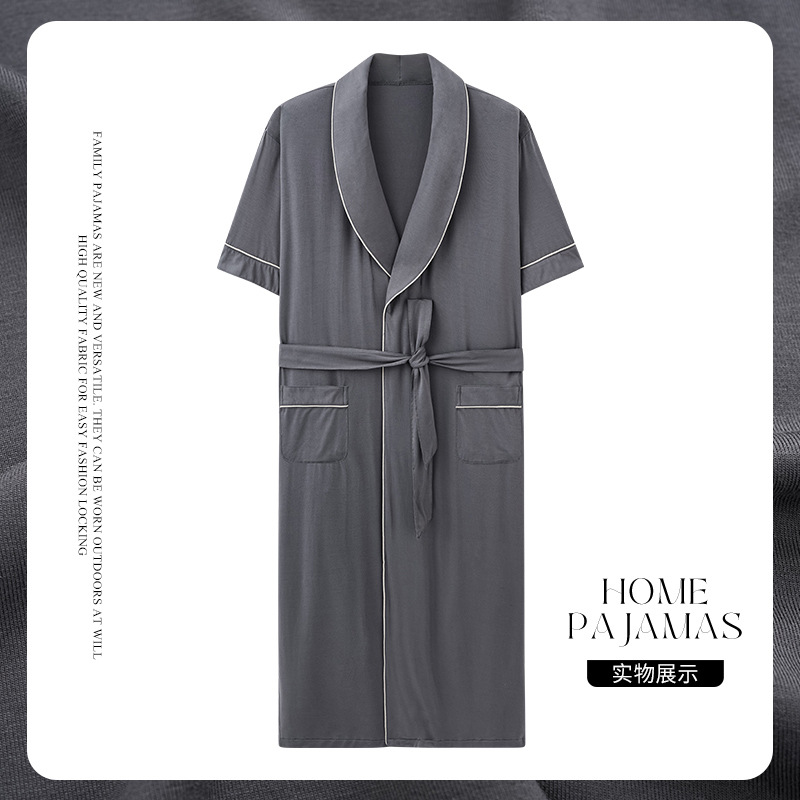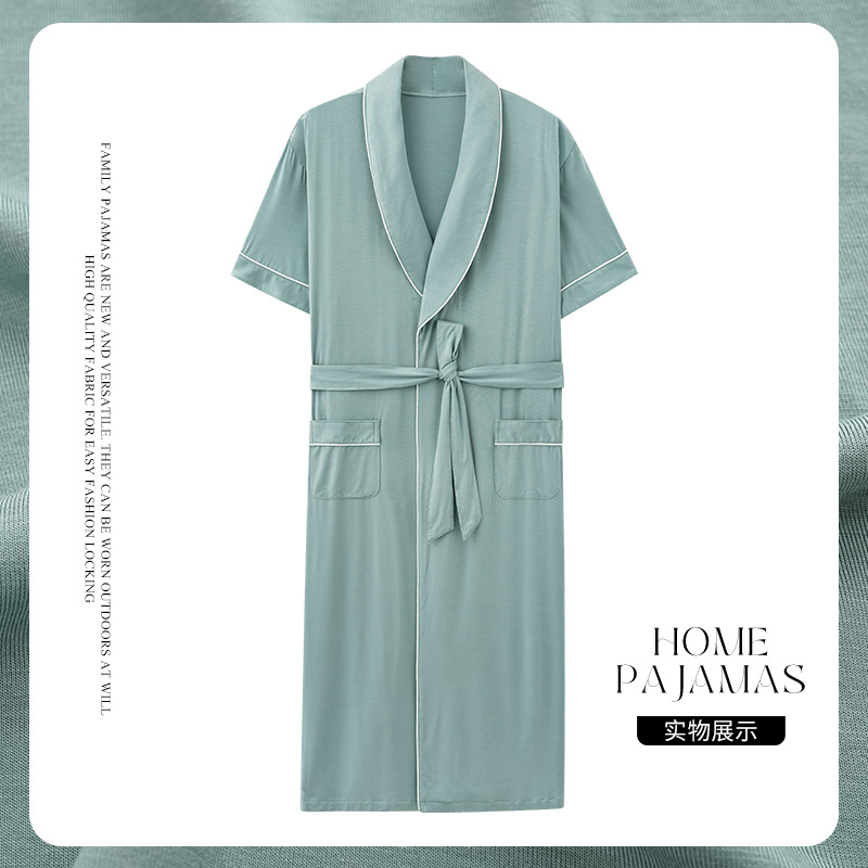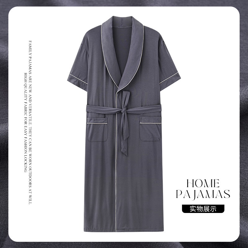 Nightgown Men's Summer Modal Short Sleeve Mid-Length Hotel Bathrobe Summer Large Size Pajamas