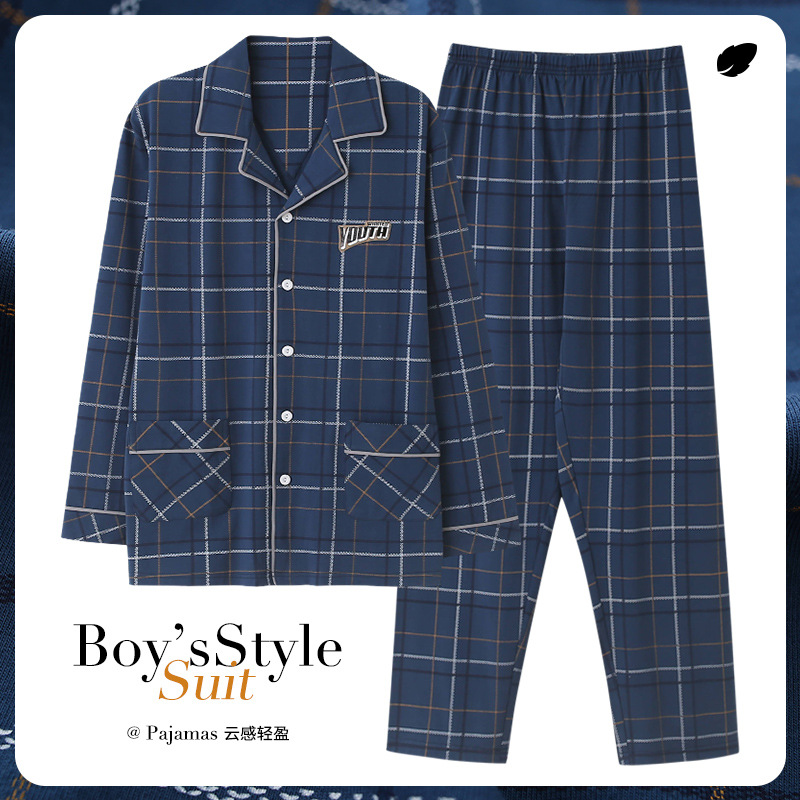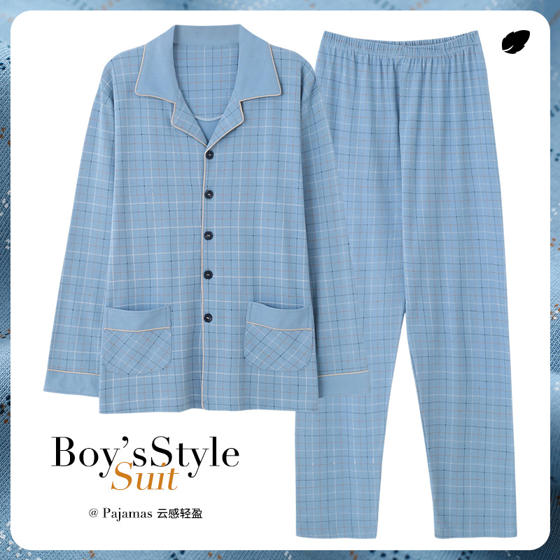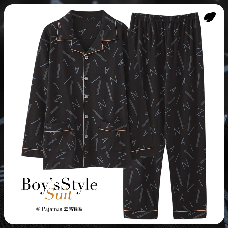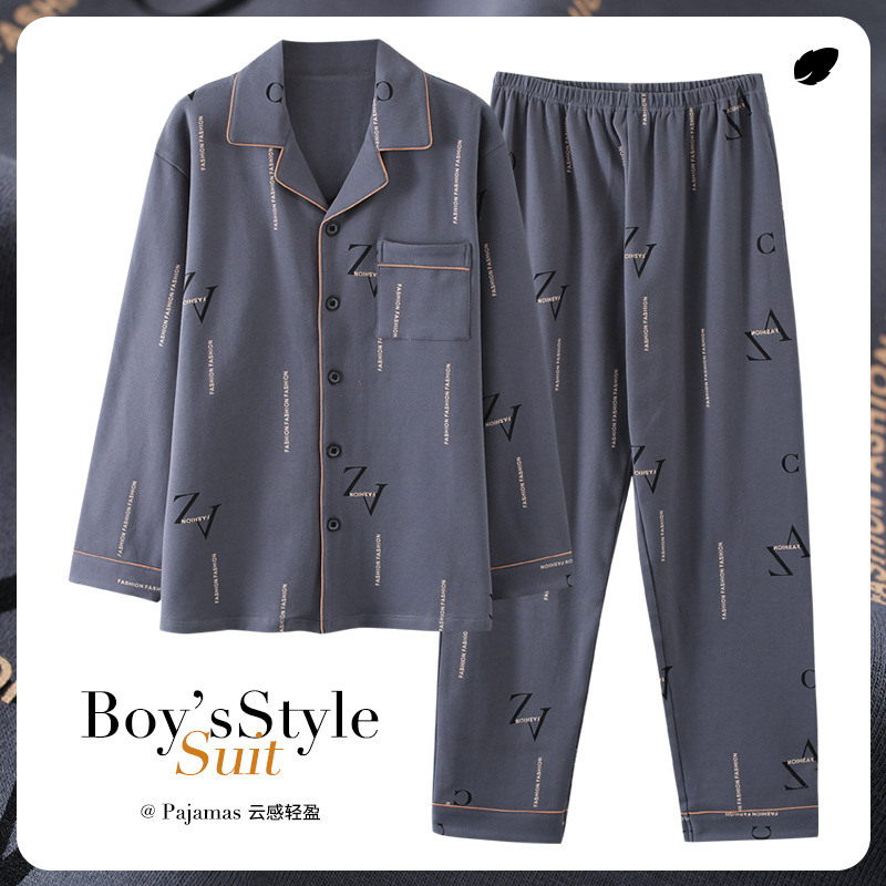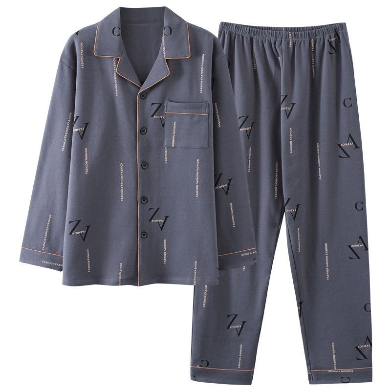 Pajamas For Men Spring And Autumn Long-sleeved Cotton Thin Plus Size Can Be Worn Outside Men's Pajamas Autumn And Winter Home Clothes Set