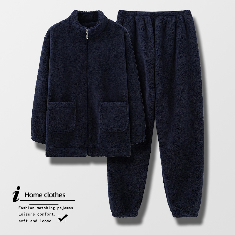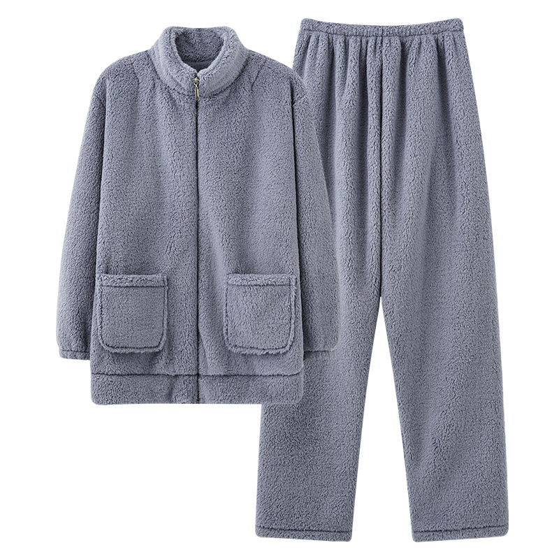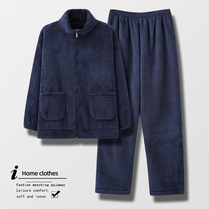Pajama Men's Winter Coral Velvet Thickened Plus Velvet Large Size Men's Winter Warm Flannel Zipper Can Be Worn Outside The Suit