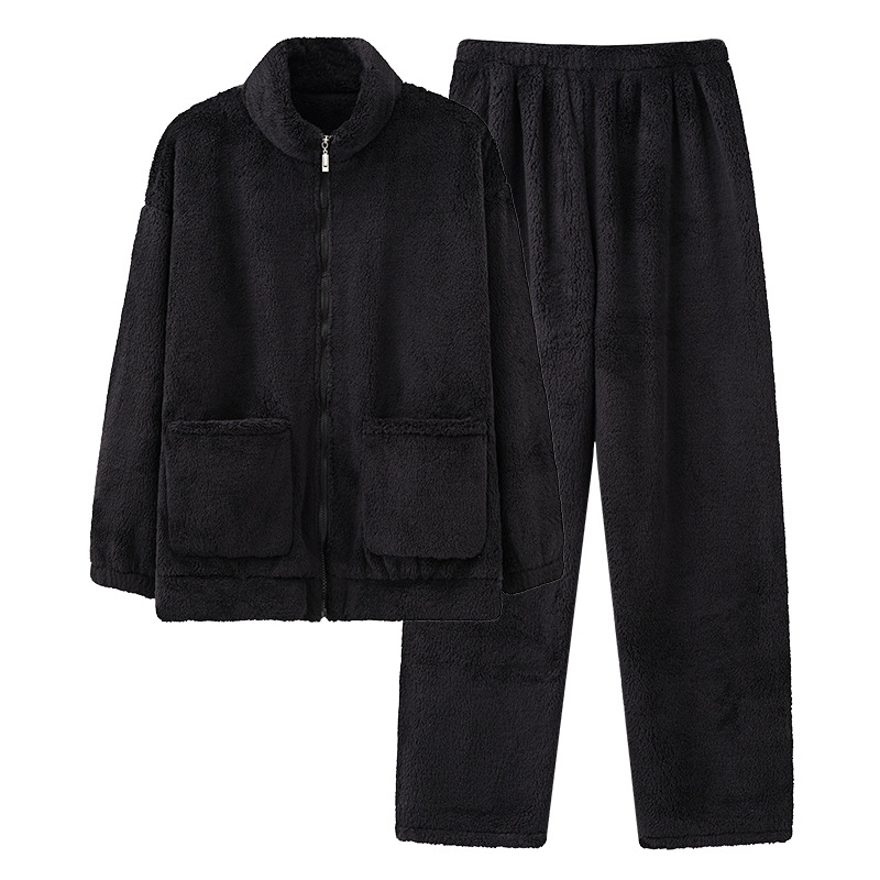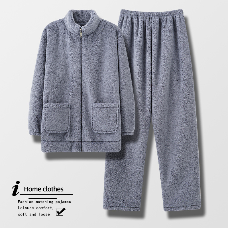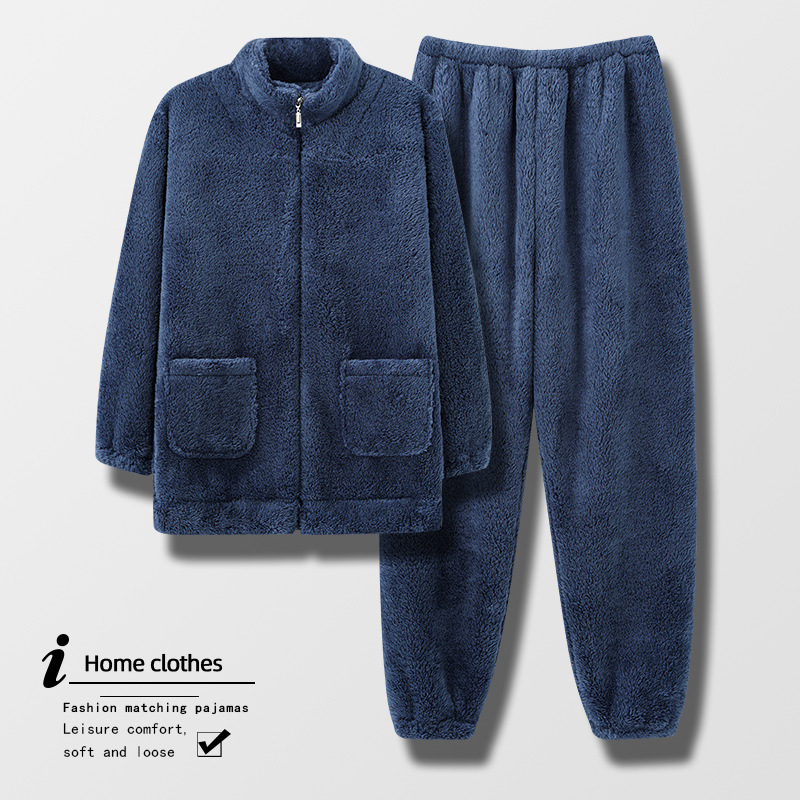 Coral Velvet Pajamas Men's Winter Plus Velvet Thickened Warm Suit Plus Fat Large Size Flannel Zipper Stand Collar Home Clothes