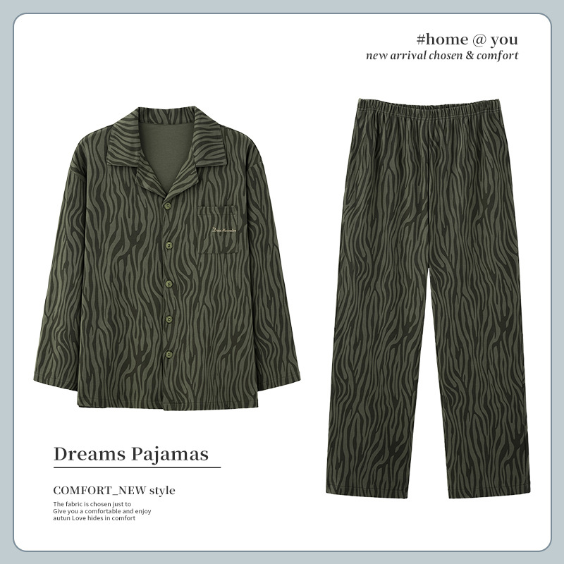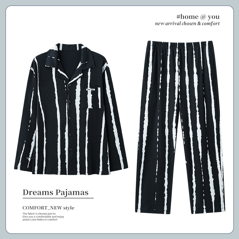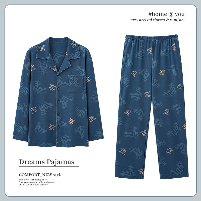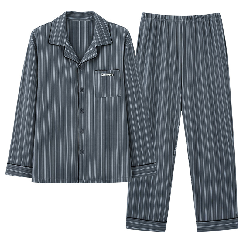 Men's Pajamas Men's Spring And Autumn Pure Cotton Long Sleeve Thin Plus Size Plus Size Autumn And Winter Cotton Home Clothing Set