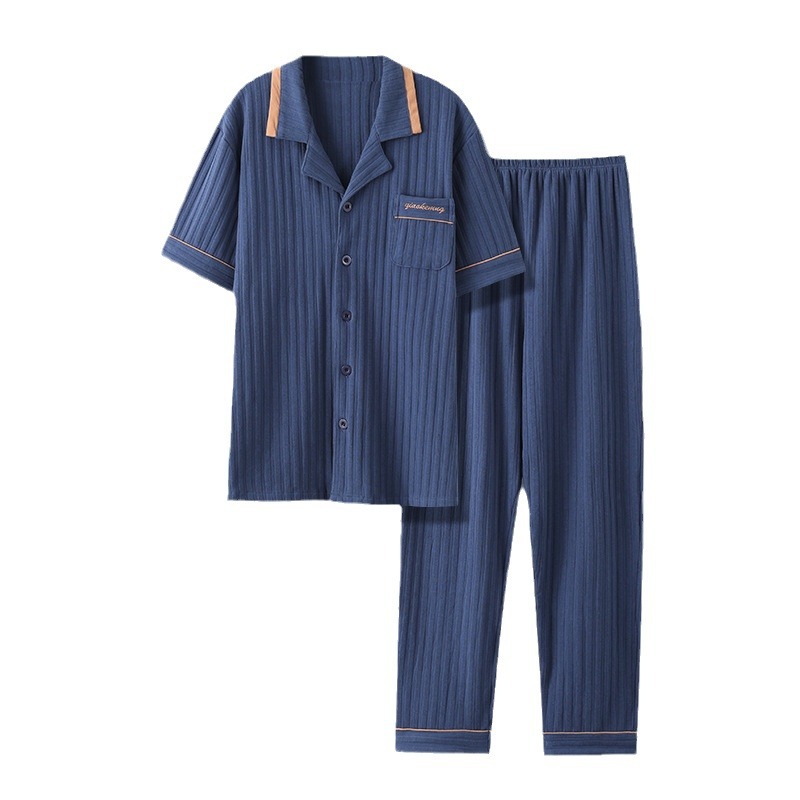 Men's Pajamas,Men's Summer Pure Cotton Short-sleeved Trousers,Cardigans,Casual Plus Size Spring And Summer Wearable Home Clothes Suits