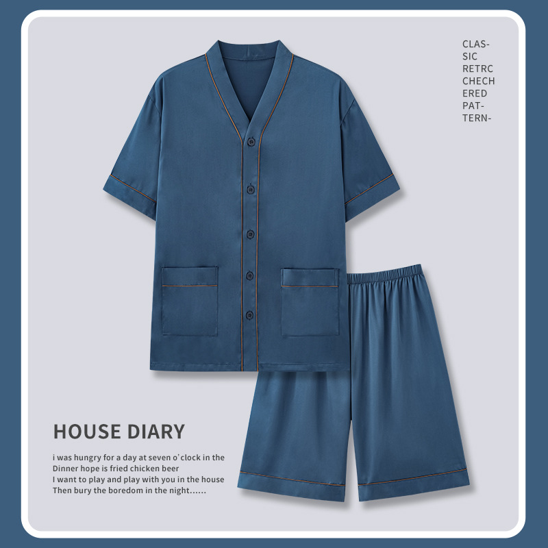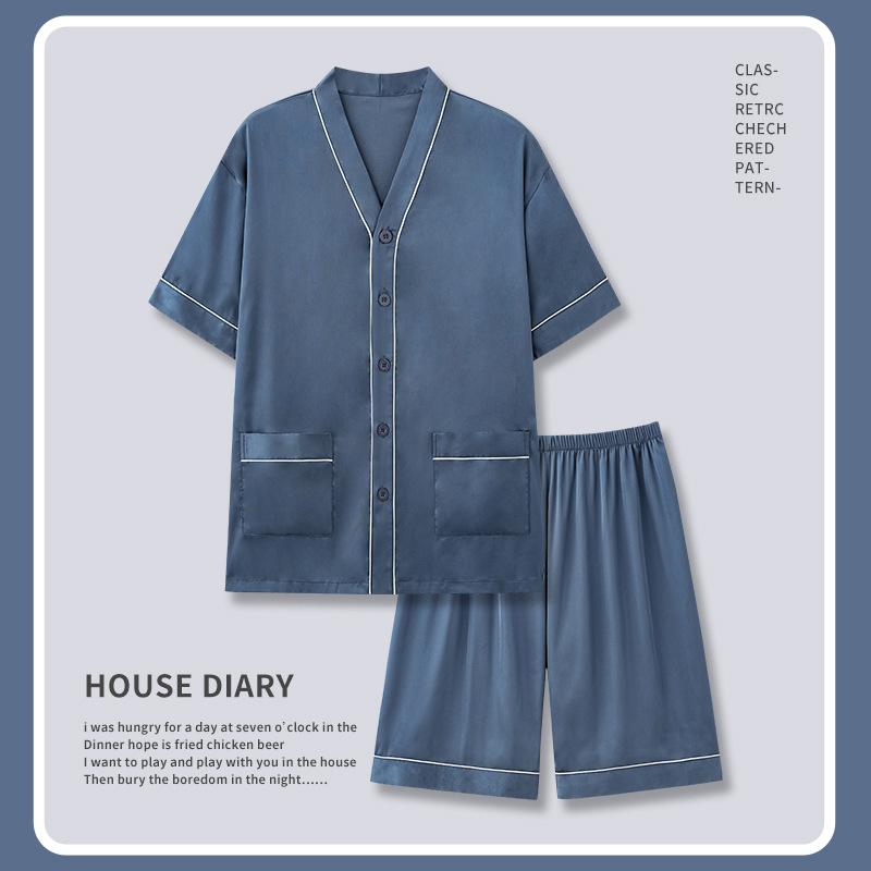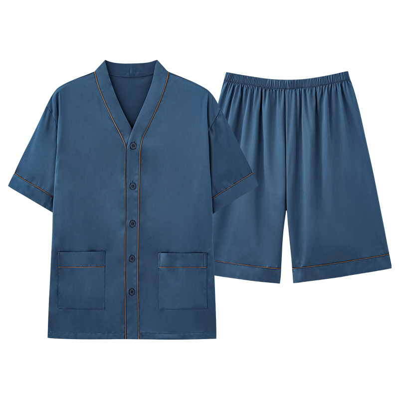 Popular Pajamas Men's Summer Thin Ice Silk Short-sleeved Shorts Summer Plus Size Silk Home Clothes Suit